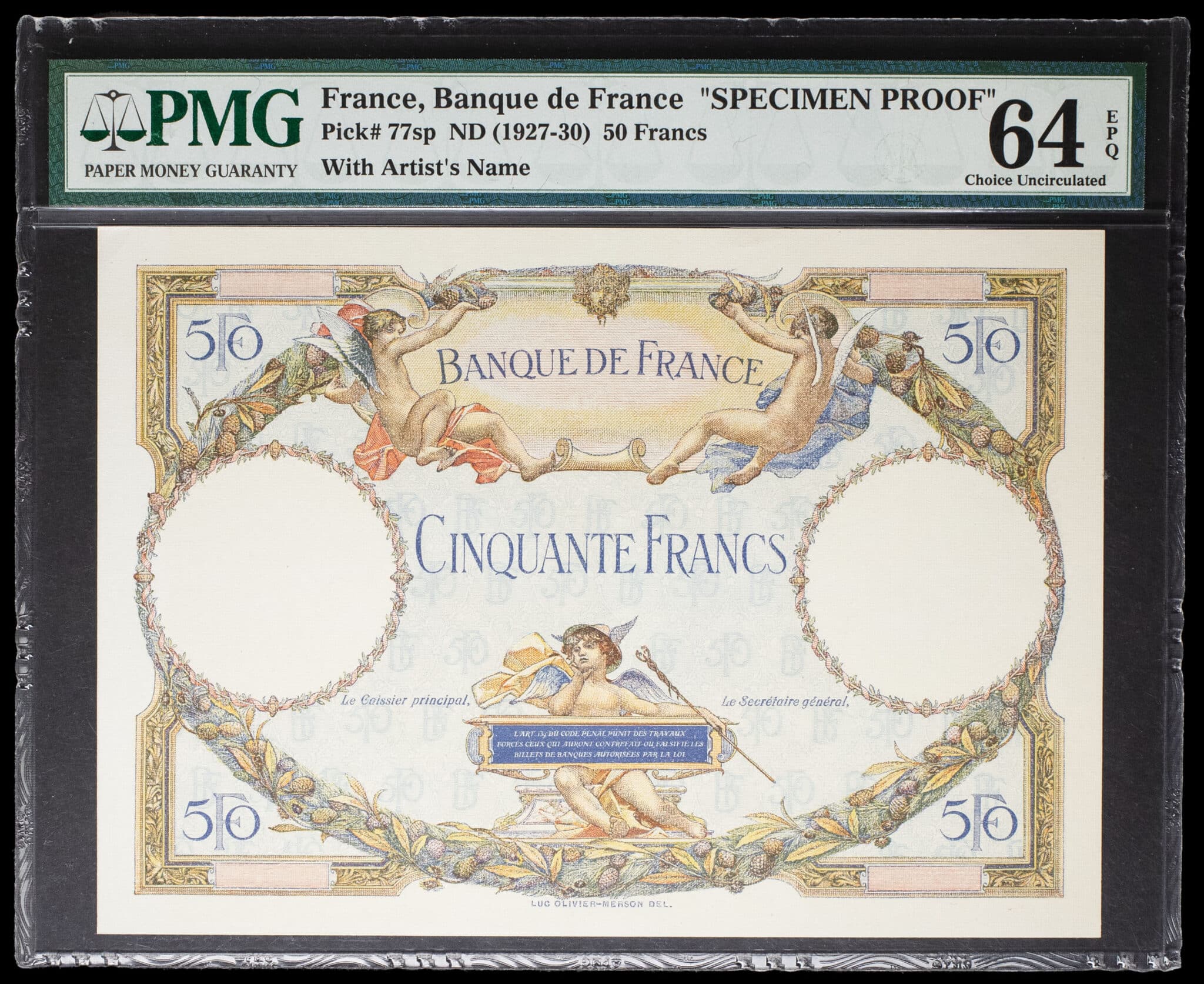- Épreuve de 50 francs type “Luc-Olivier Merson” (FRONT-BACK PROOF) ND (1927).