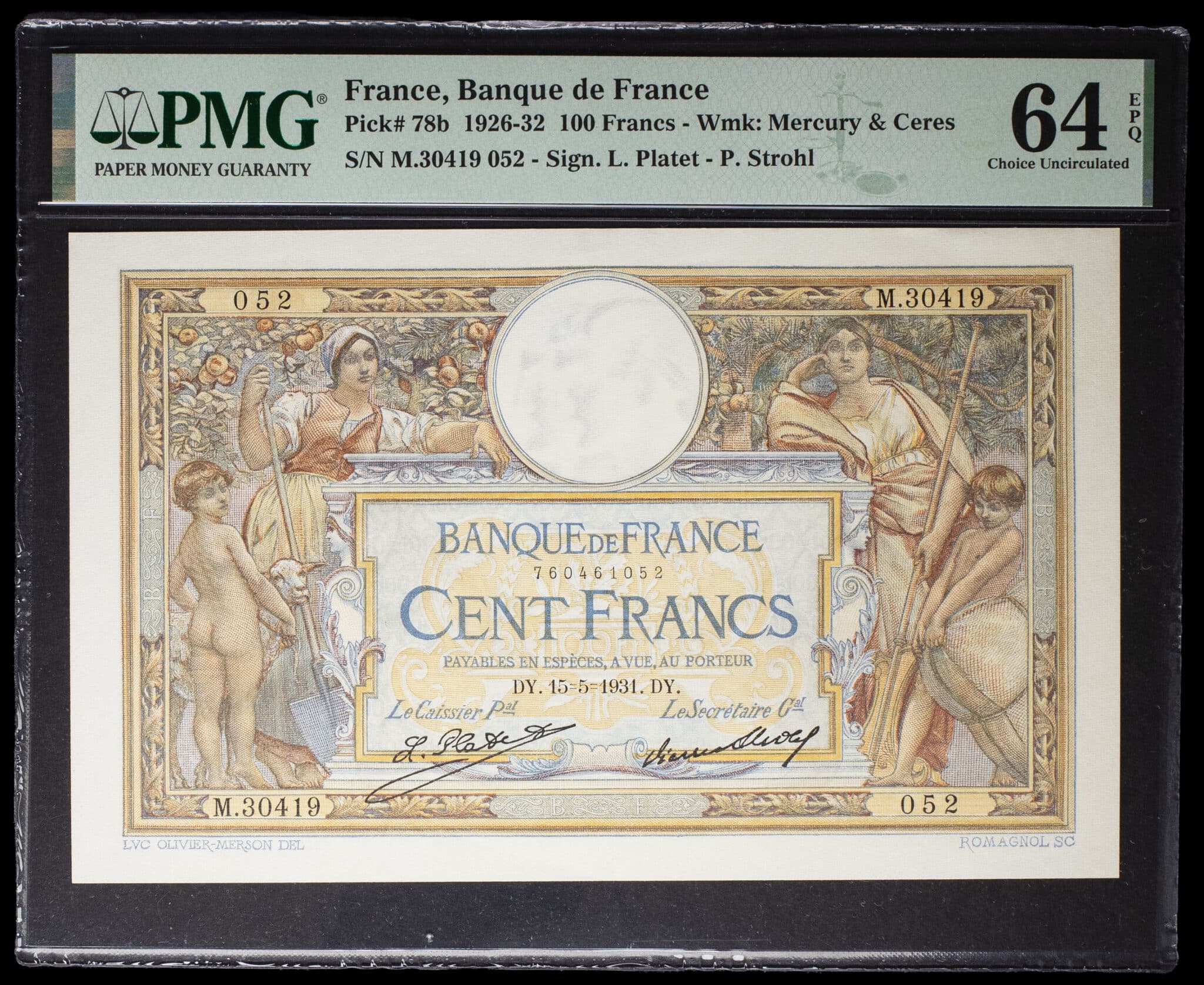 - 100 francs type “Luc-Olivier Merson” modifié avec grands cartouches 15-5-1931.