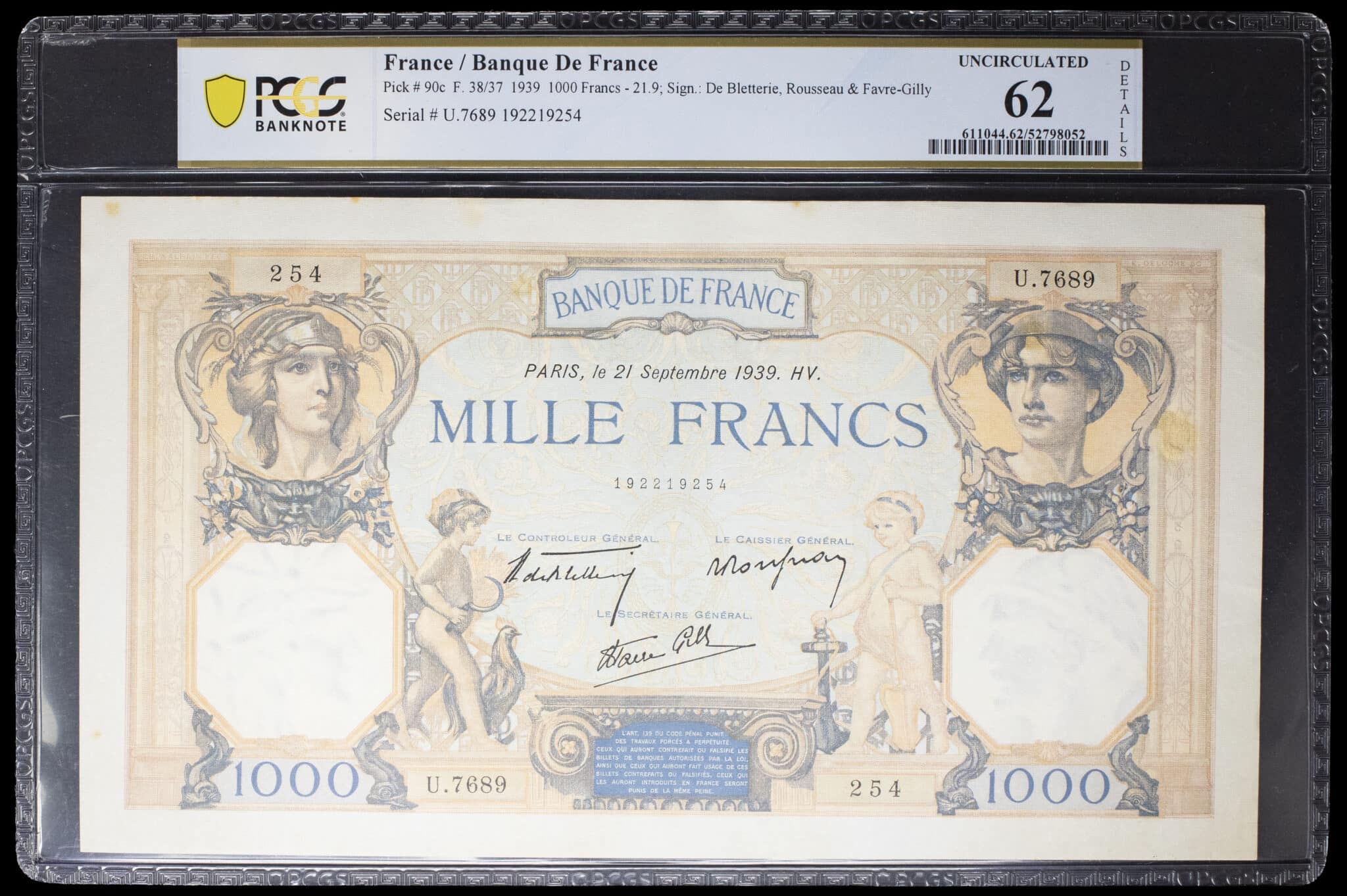 - 1000 francs type “Cérès et Mercure” 21 septembre 1939.