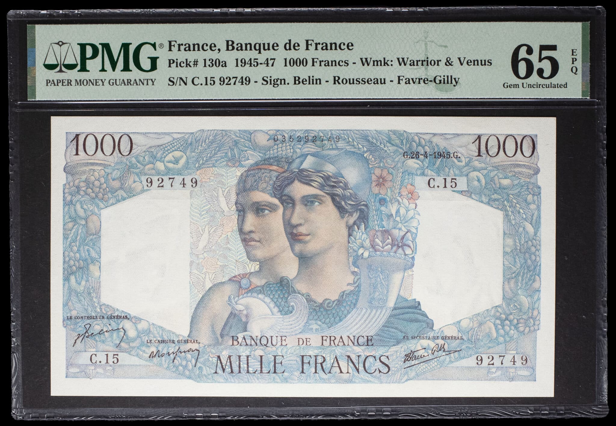 - 1000 francs type “Minerve et Hercule” 26-4-1945.