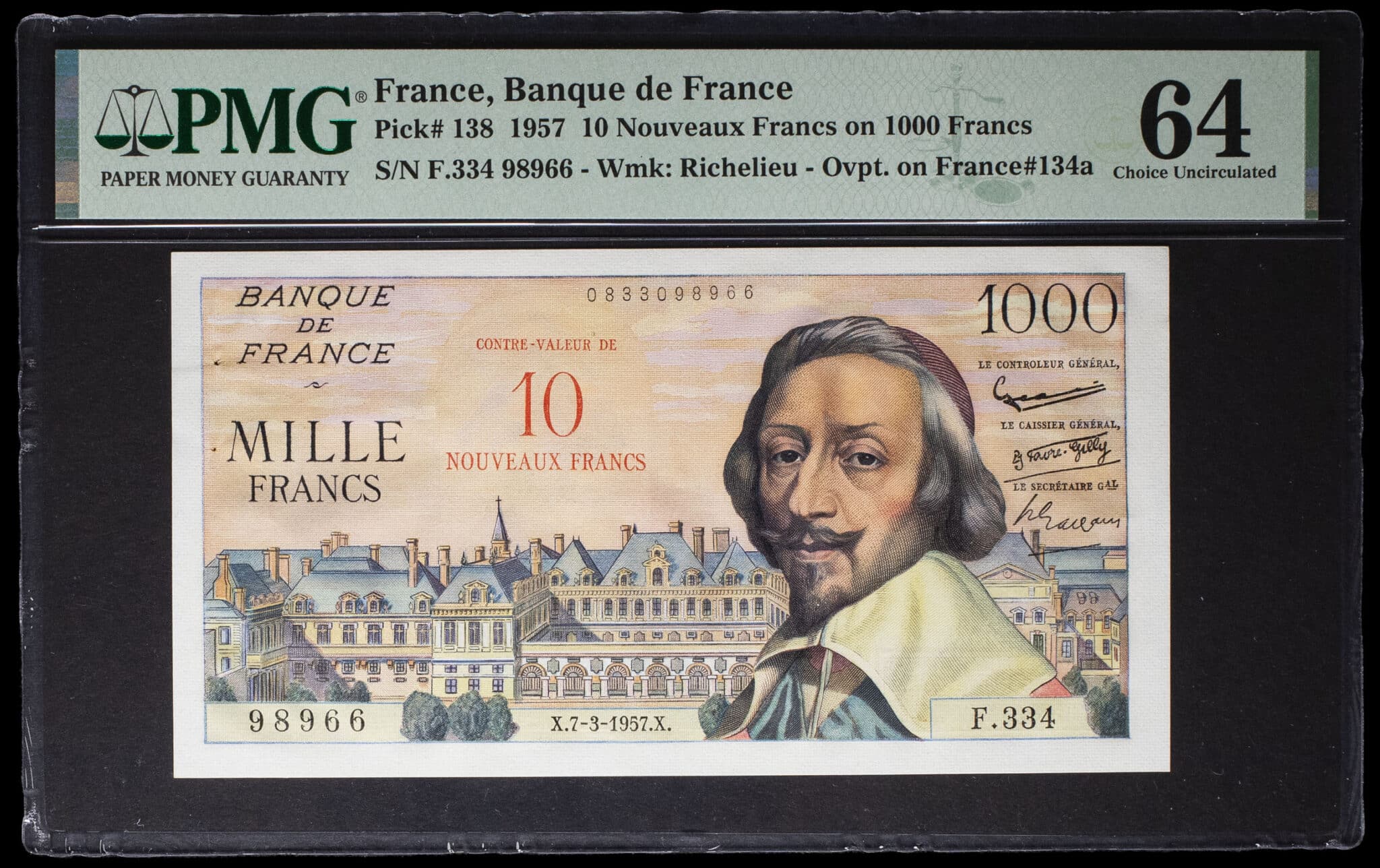 - 10 nouveaux francs surchargé sur 1000 francs type “Richelieu” 7-3-1957.
