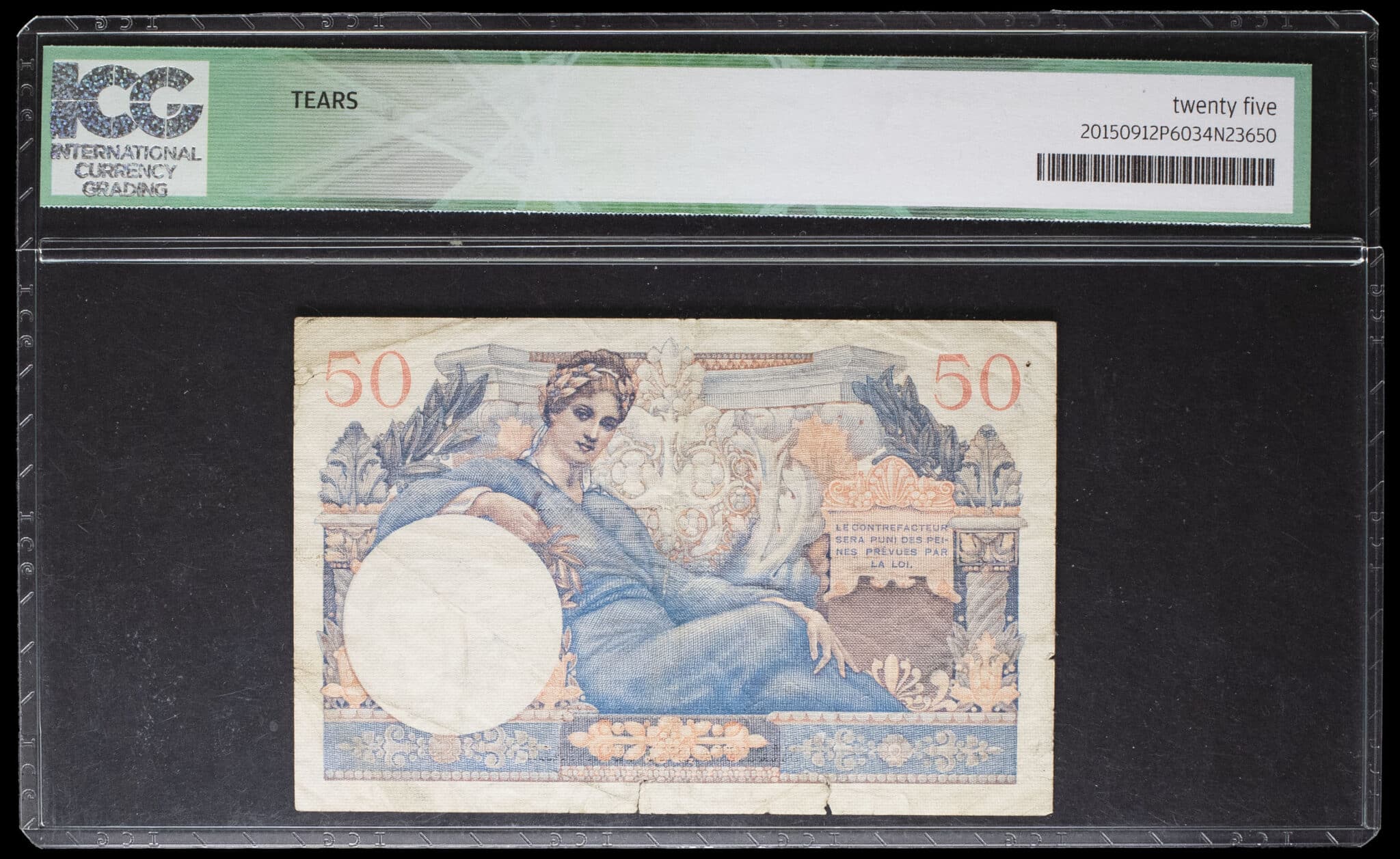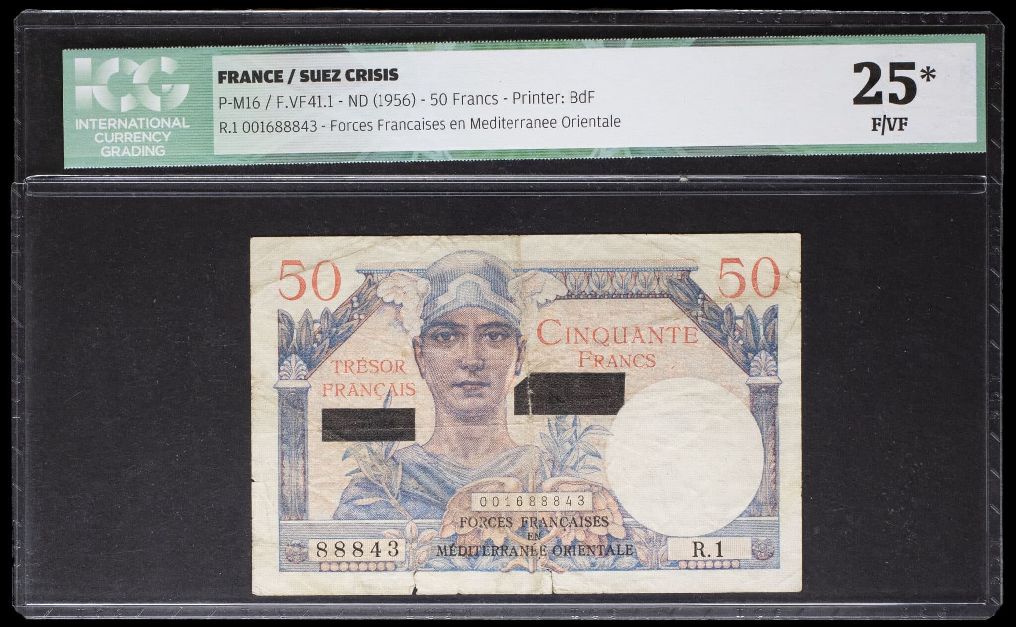 - 50 francs type “Mercure” surchargé dit “Suez” - Trésor Français / Forces Françaises en Méditerranée Orientale ND (1956).