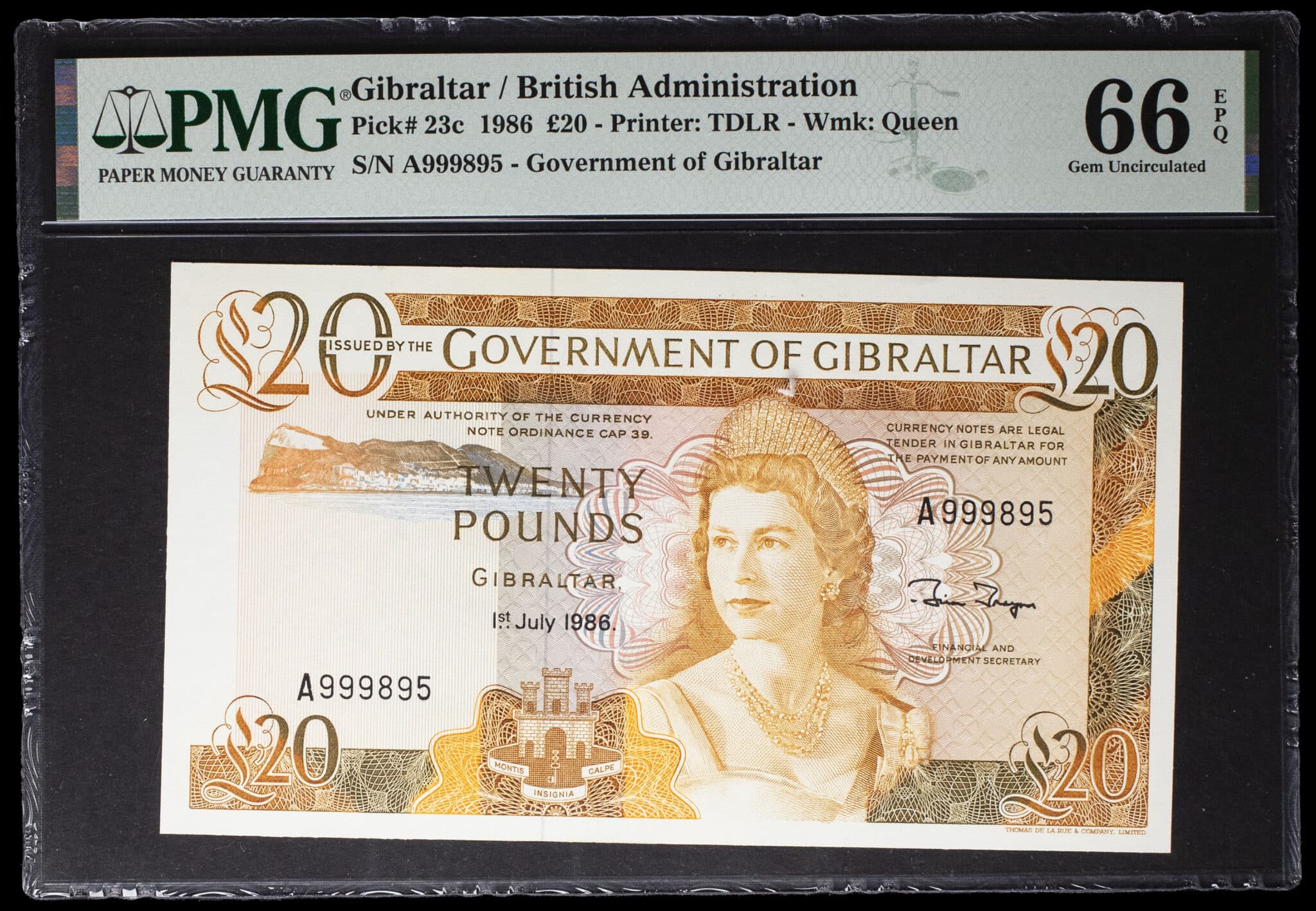 - 20 pounds avec le portrait de la reine Élisabeth (Elizabeth) II 1er juillet 1986.