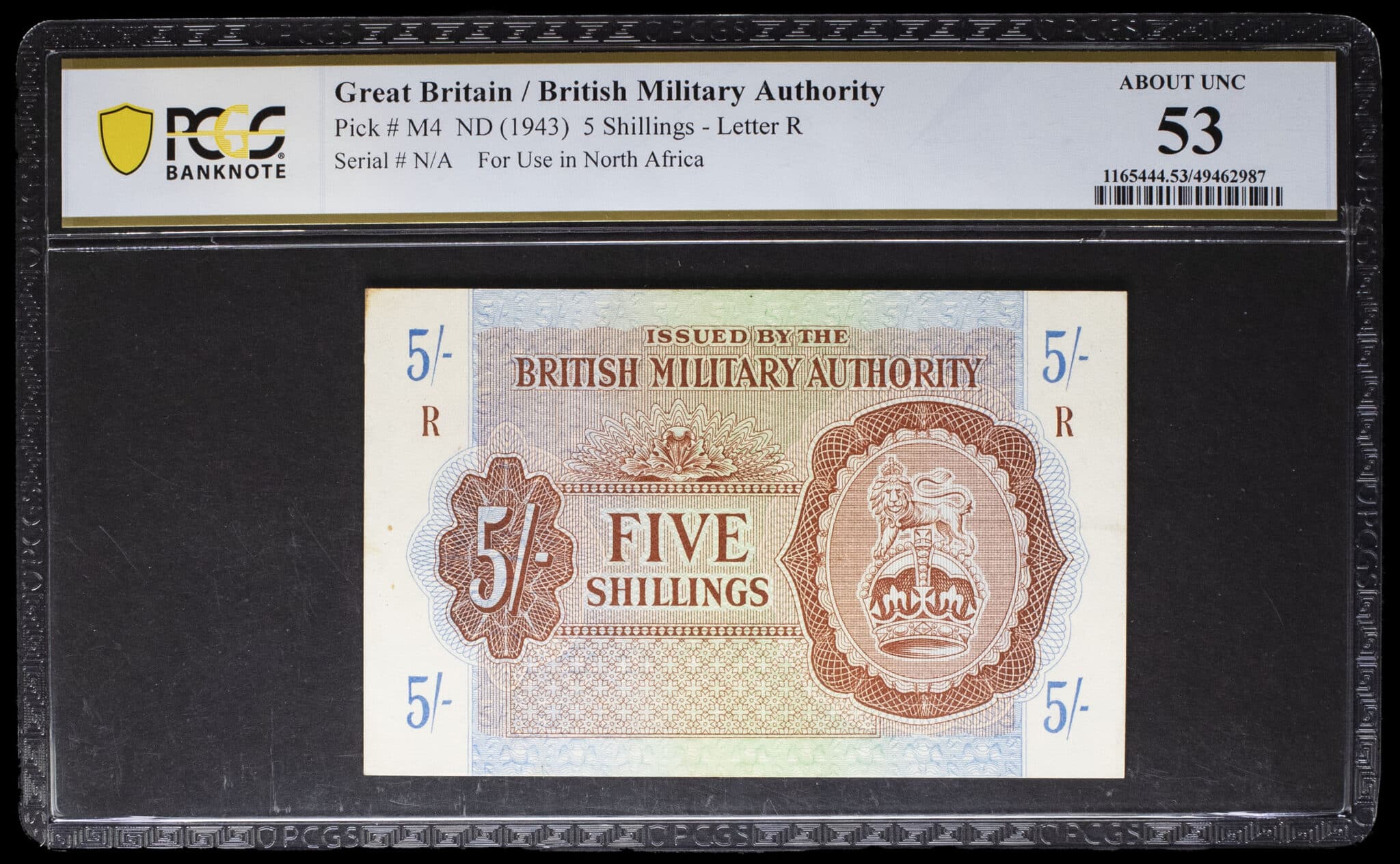 - UNITED KINGDOM 5 shillings - British Military Authority ND (1943).