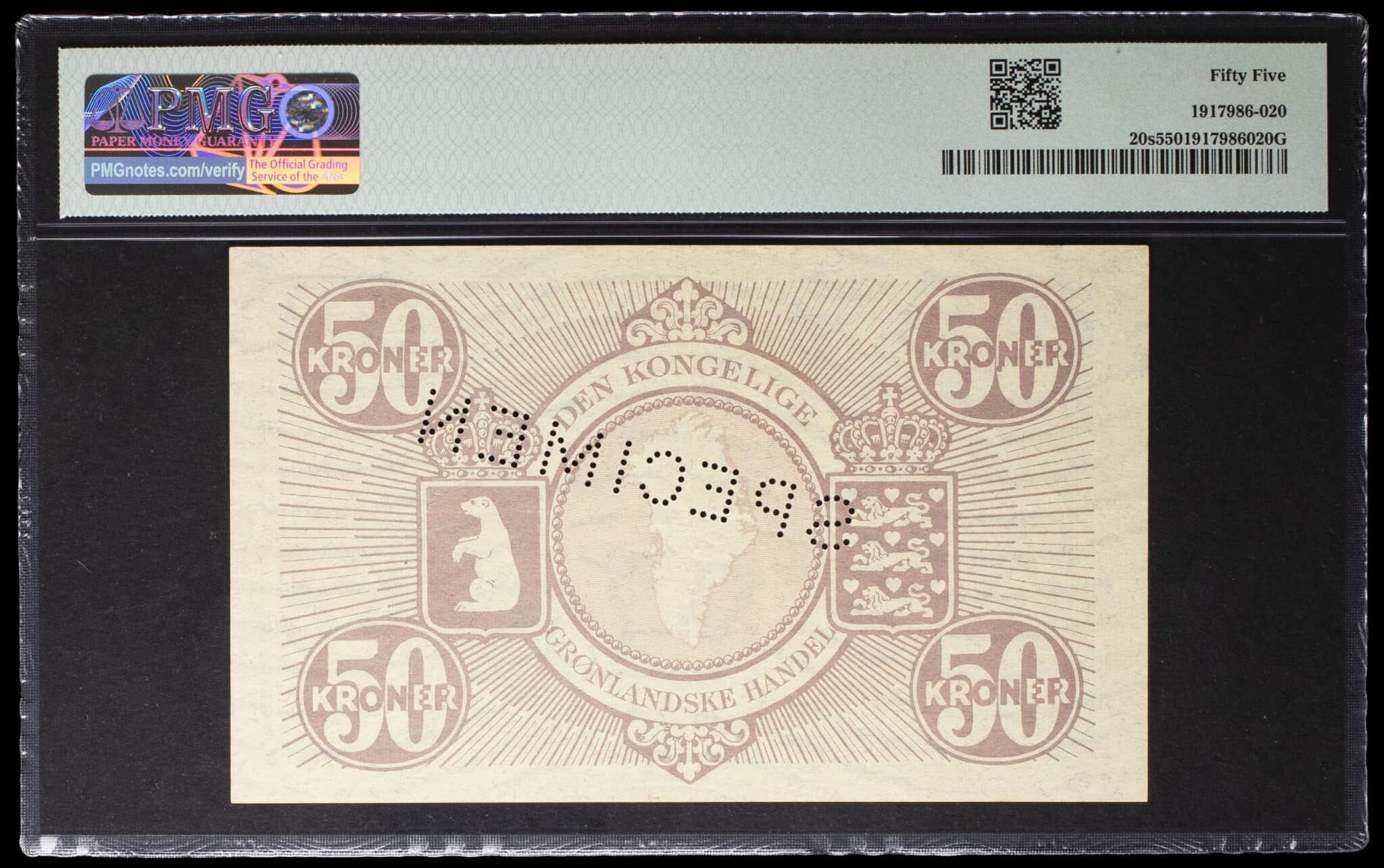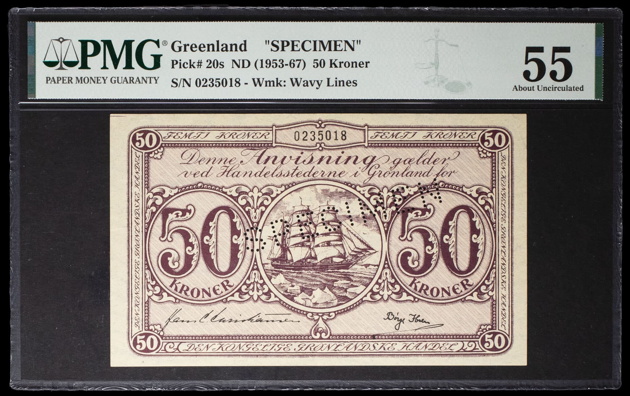 - GREENLAND 50 kroner type “clipper” modifié (SPÉCIMEN) - Kongelige Grønlandske Handel ND (1953-1967).