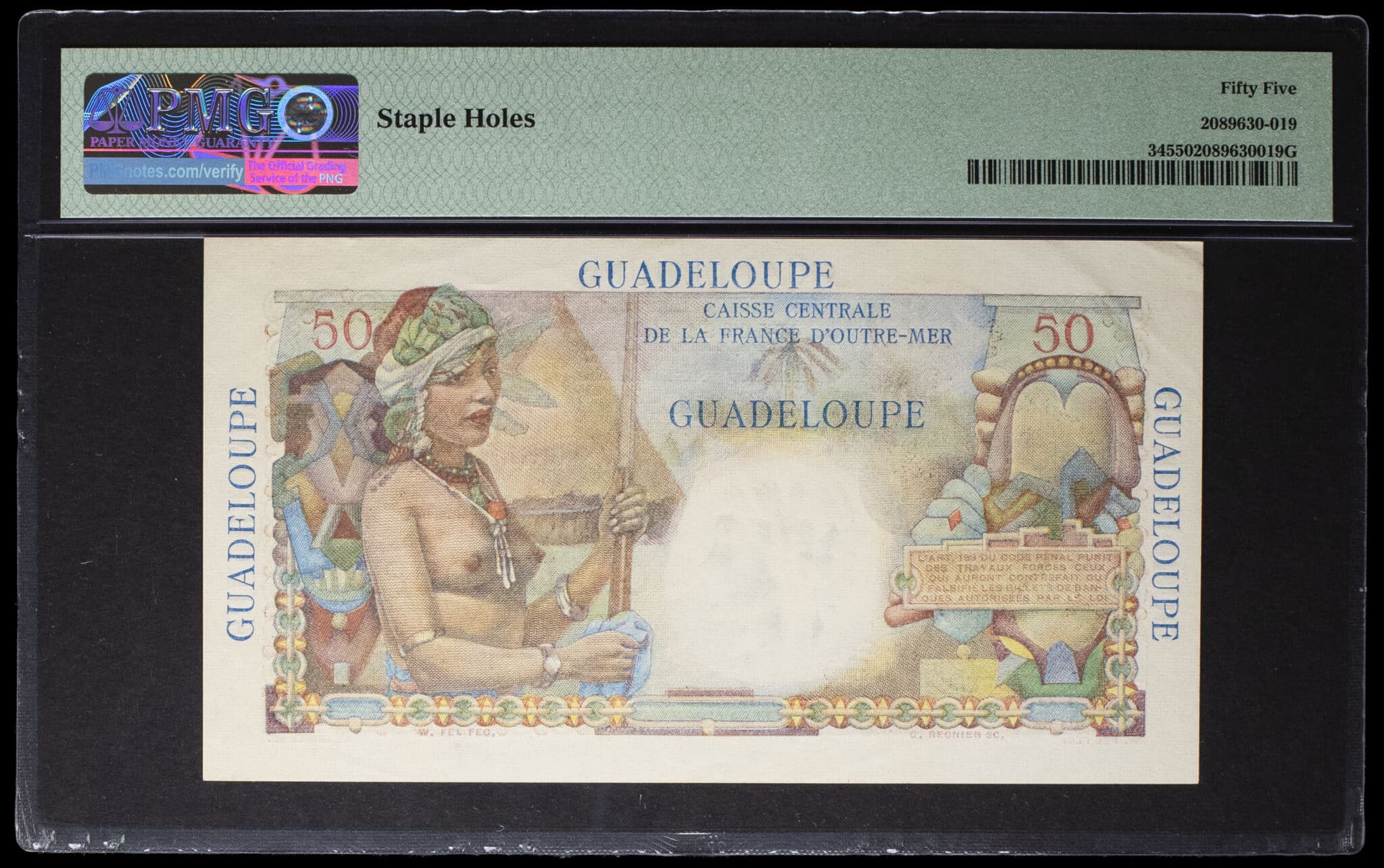 PMG 55 About Uncirculated (2089630-019). Un épinglage (trois trous) et quelques manipulation. Pr. SPL.