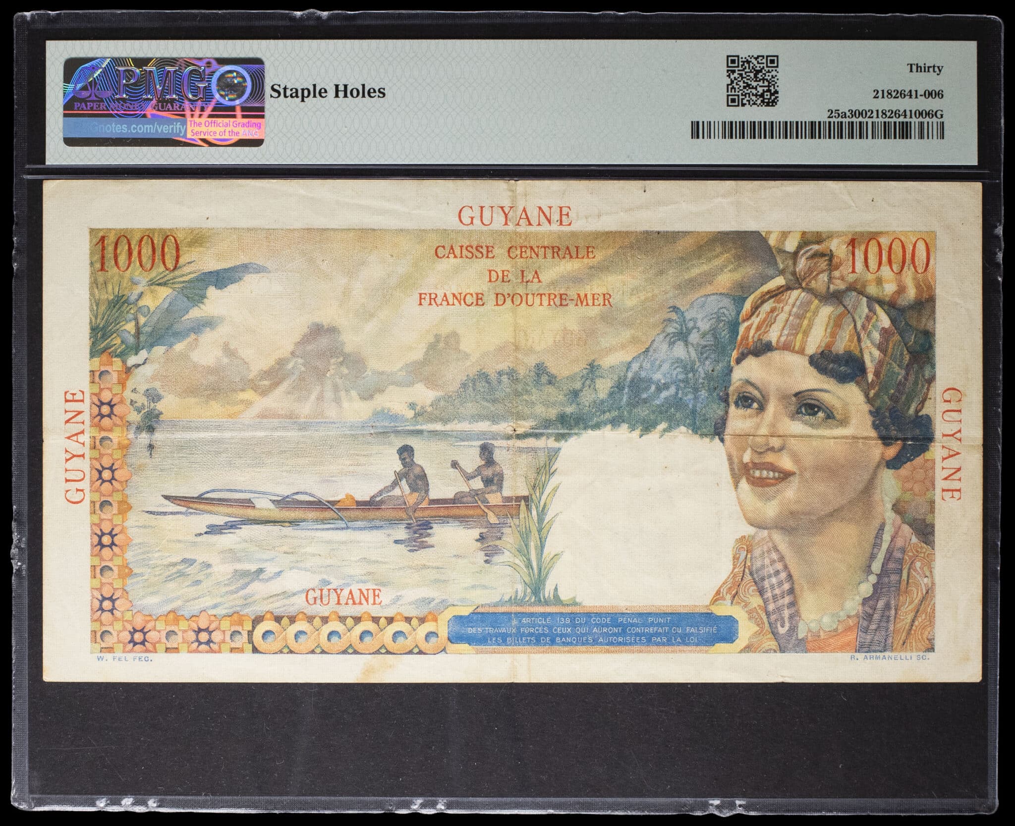 - FRENCH GUIANA 1000 francs type “Union française” - Caisse centrale de la France d’outre-mer ND (1947).