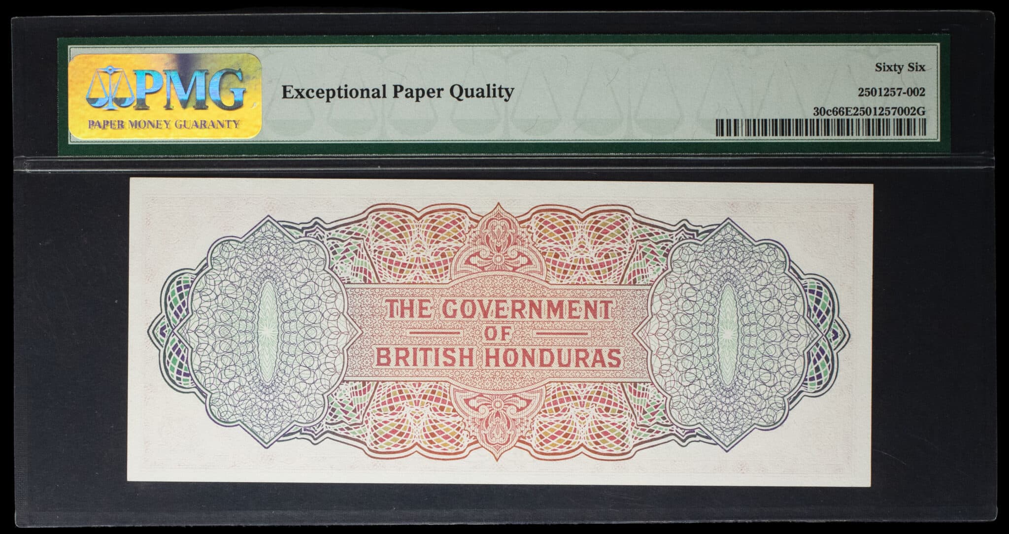 - BRITISH HONDURAS 5 dollars avec le portrait de la reine Élisabeth (Elizabeth) II 1er janvier 1973.