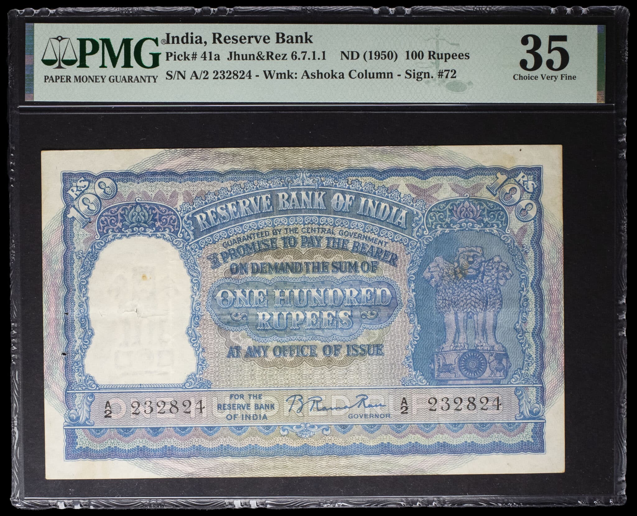 - INDIA 100 rupees type “chapiteau aux lions d'Ashoka” ND (1950).