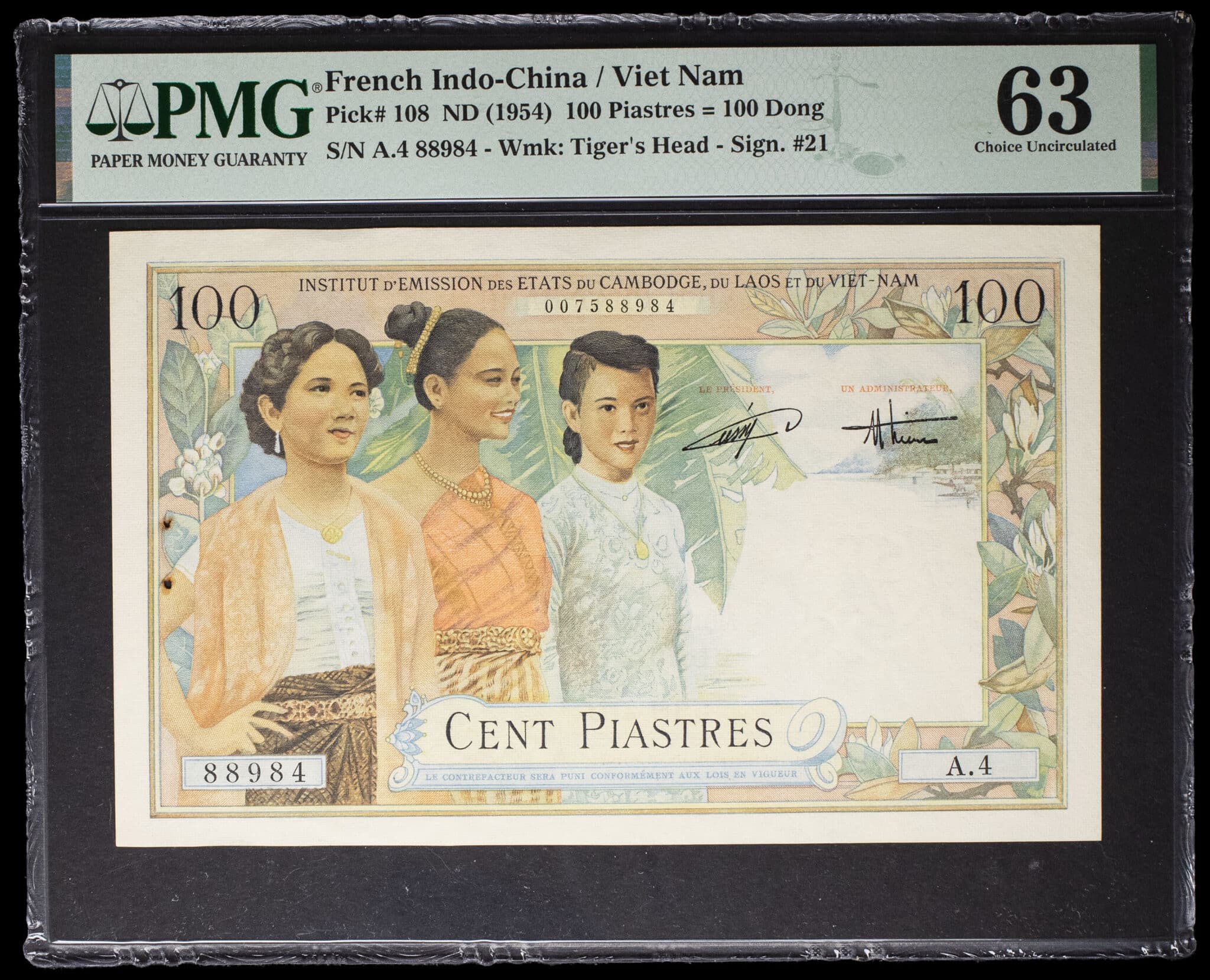 100 piastres / dong (Vietnam) type “jeunes femmes de Saïgon” - Institut d’Émission des États du Cambodge, du Laos et du Viet-Nam ND (1954).