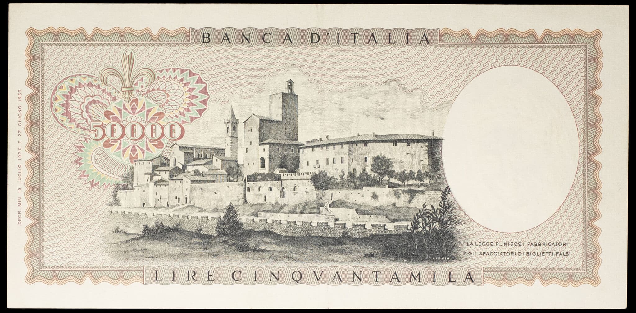 - ITALY 50 000 lire type “Leonardo da Vinci” 19 juillet 1970.