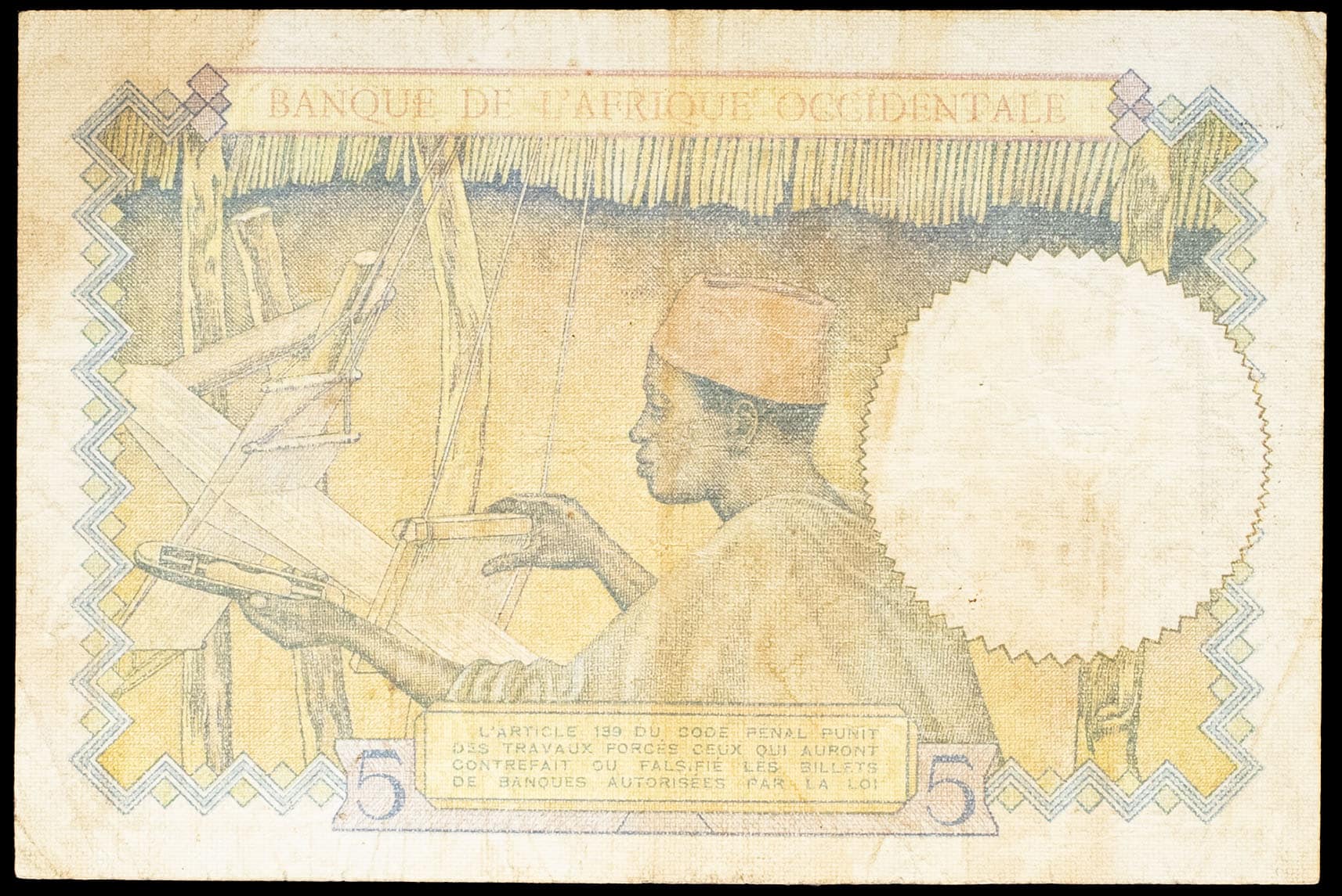 - LIBYA 5 francs surchargé “RF FEZZAN” - Banque de l’Afrique Occidentale 10-3-1938 (1943).