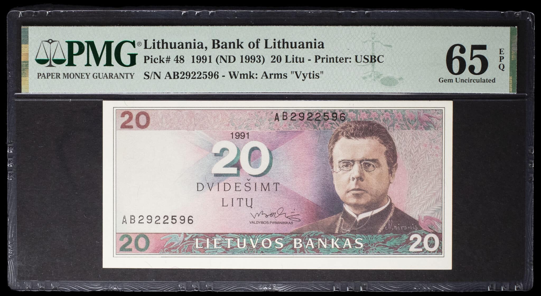 - LITHUANIA 20 litų type “Jonas Maironis” 1991.