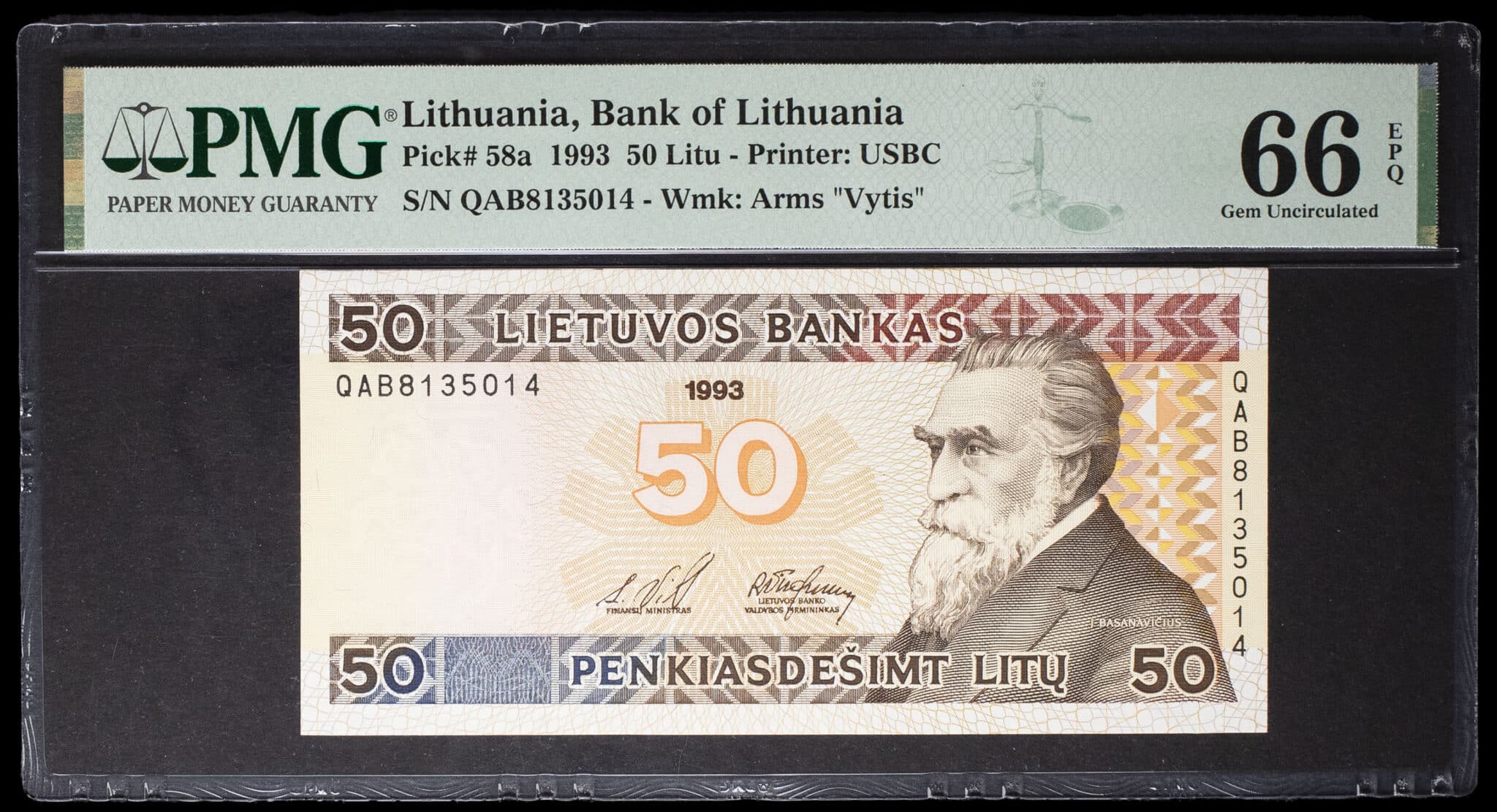 - LITHUANIA 50 litų type “Jonas Basanavičius” modifié 1993.