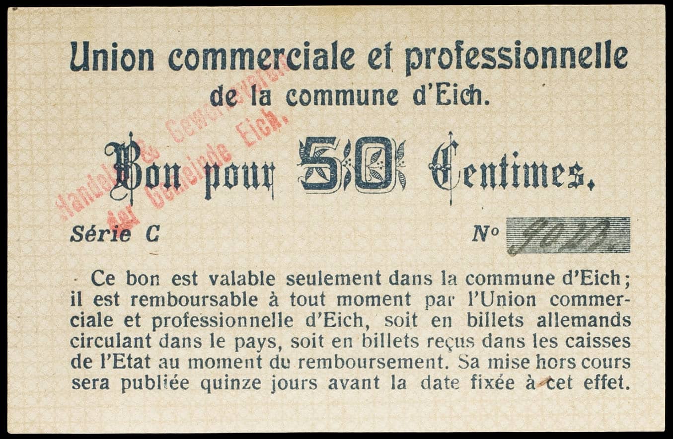 - 50 centimes - Union commerciale et professionnelle de la commune d’Eich ND (1918).