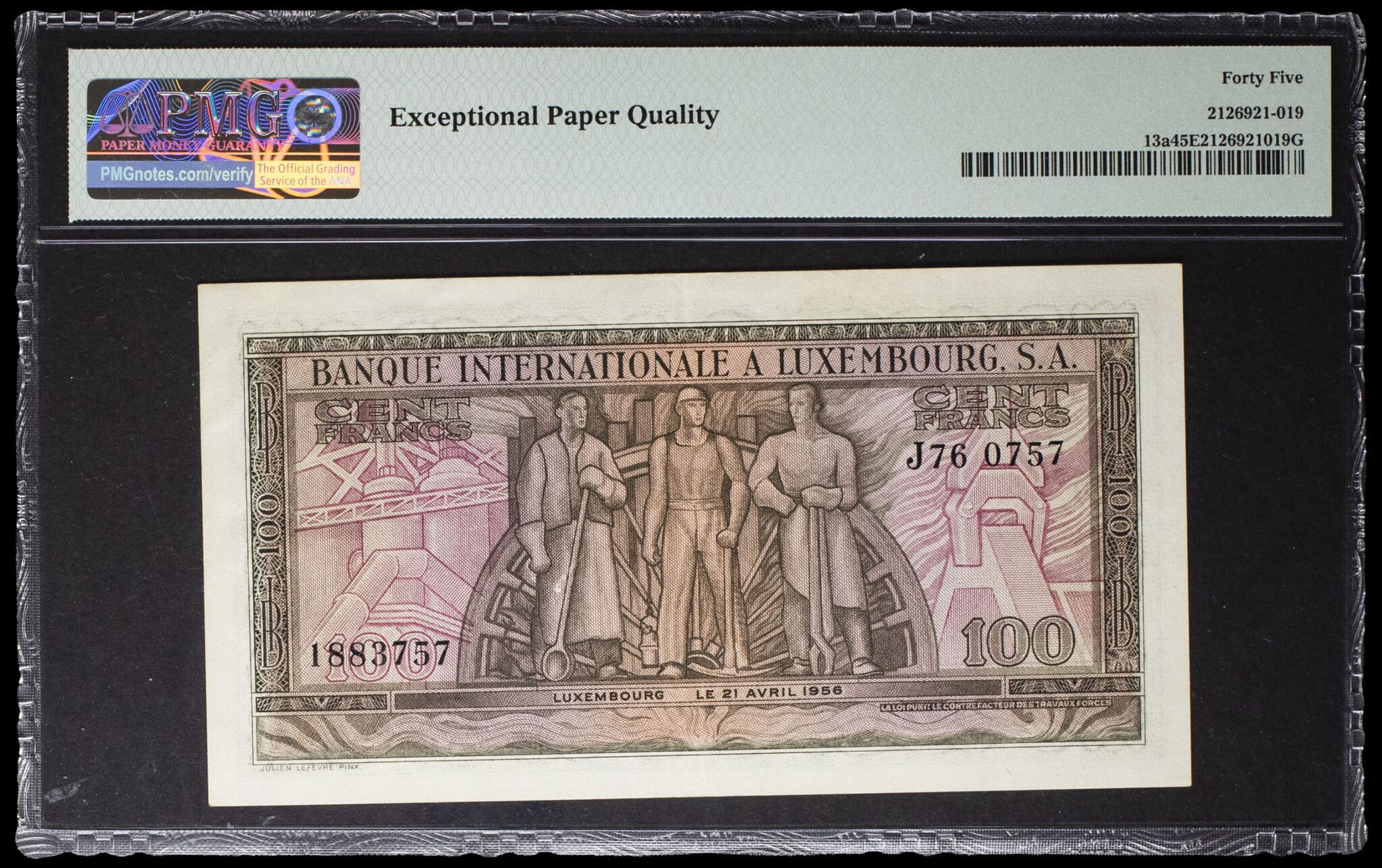 PMG 45 EPQ Choice Extremely Fine (2126921-019). Deux plis verticaux au centre et quelques traces de manipulations. SUP.