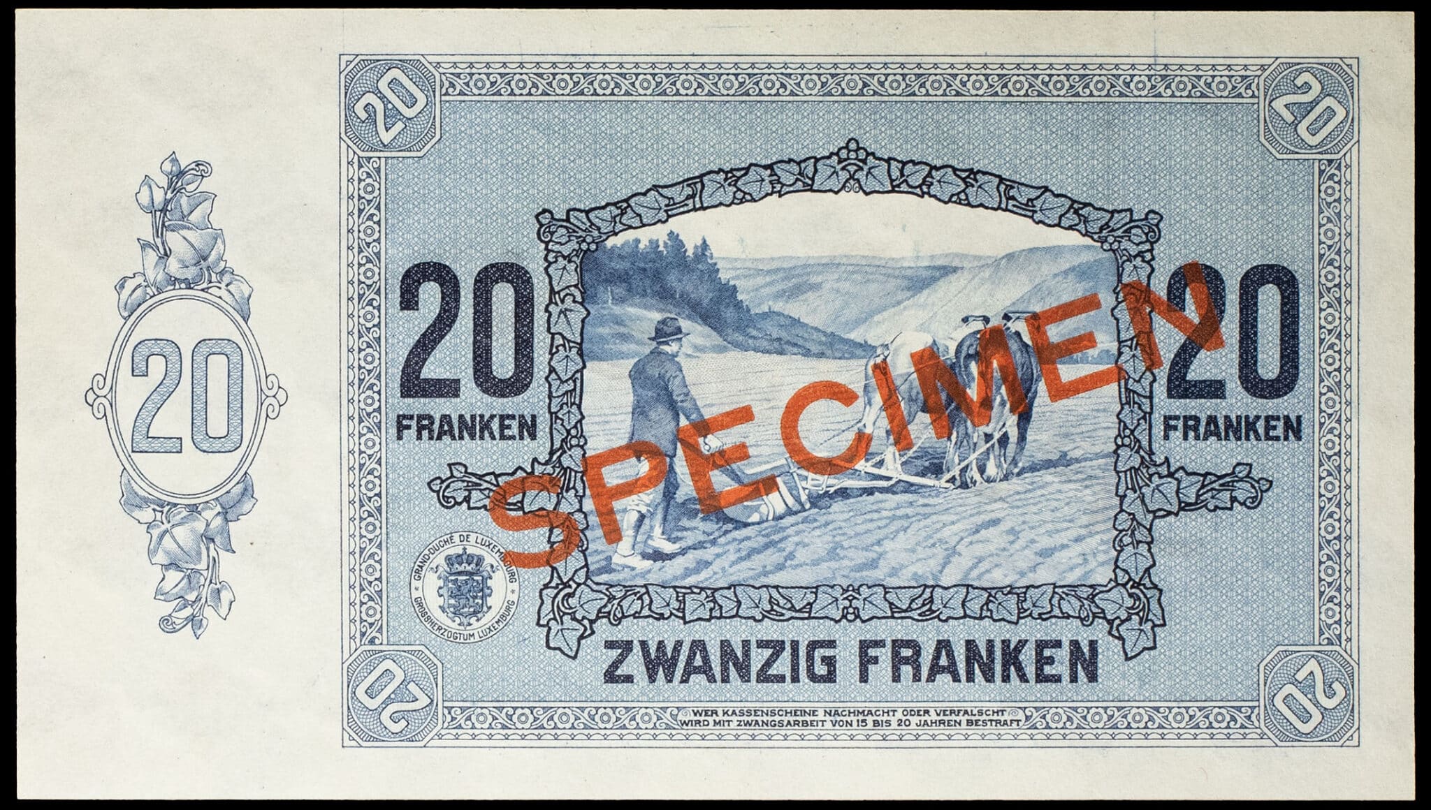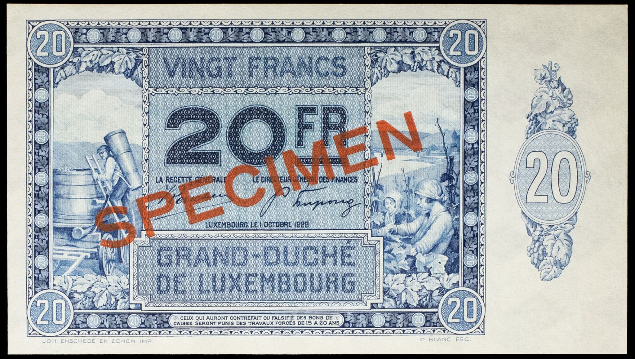 - 20 francs type “vendanges” (SPÉCIMEN) 1er octobre 1929.