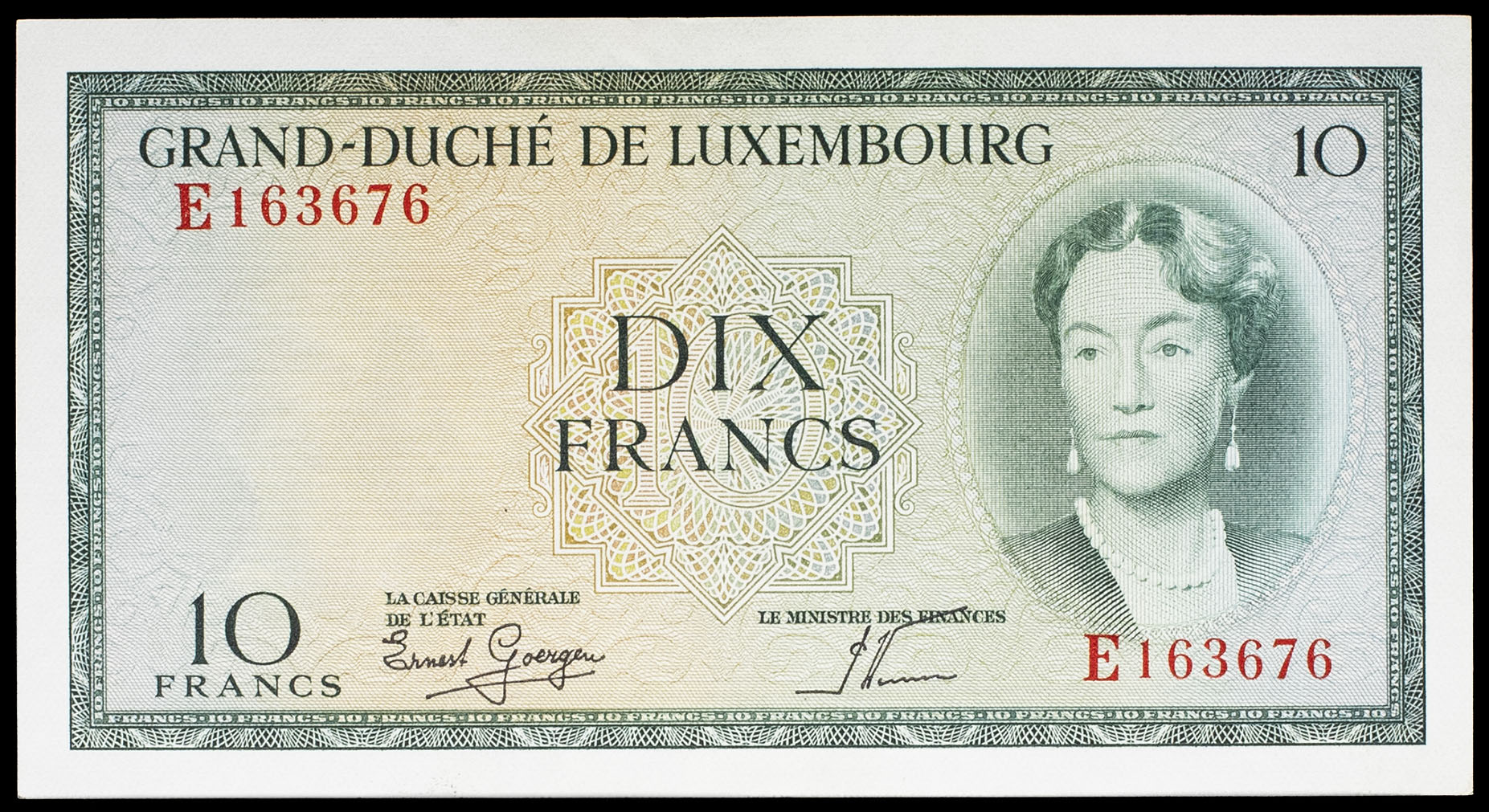 - 10 francs avec le portrait de la grande-duchesse Charlotte ND (1954).