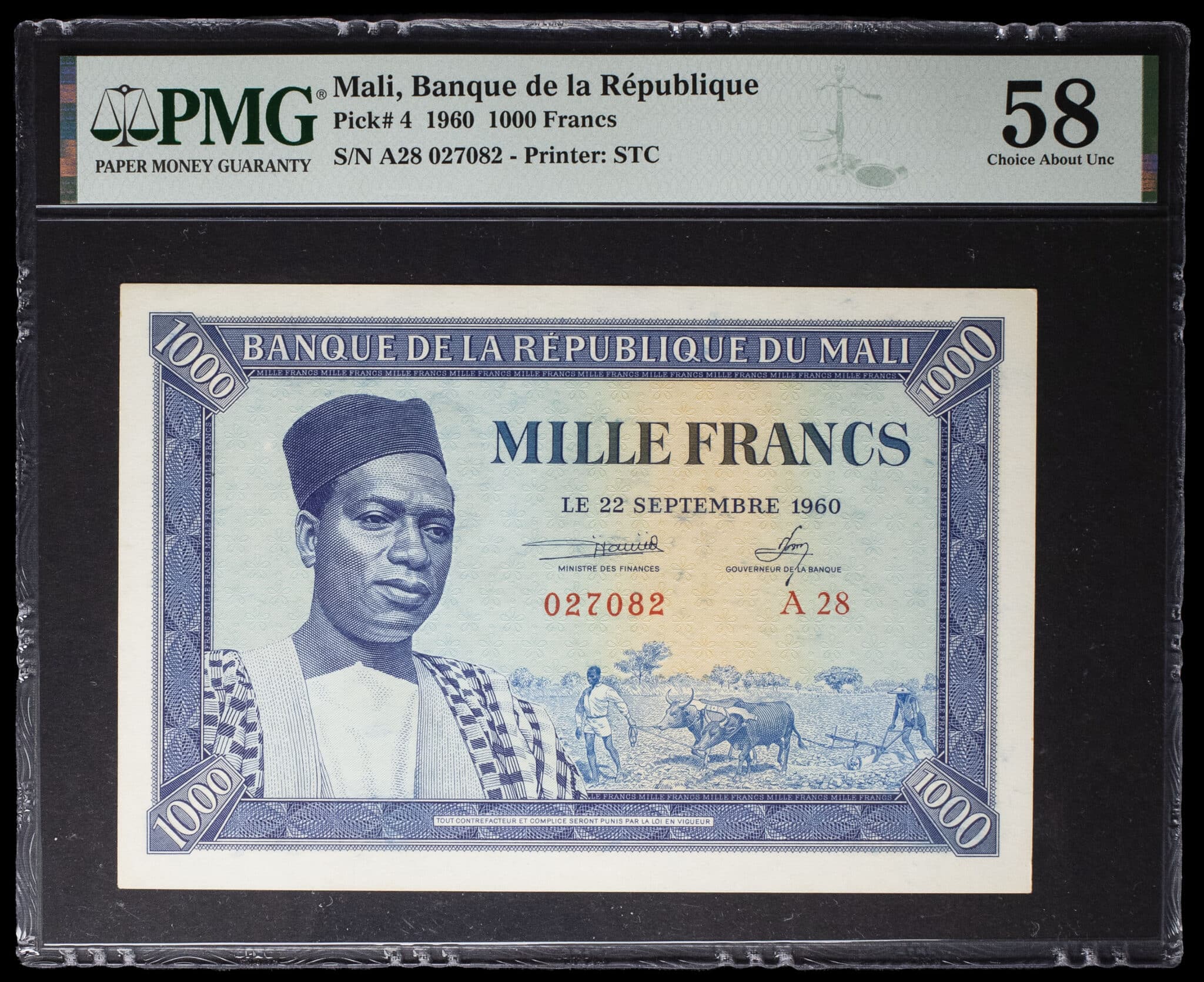 - 1000 francs avec le portrait du président Mobido Keita 22 septembre 1960.