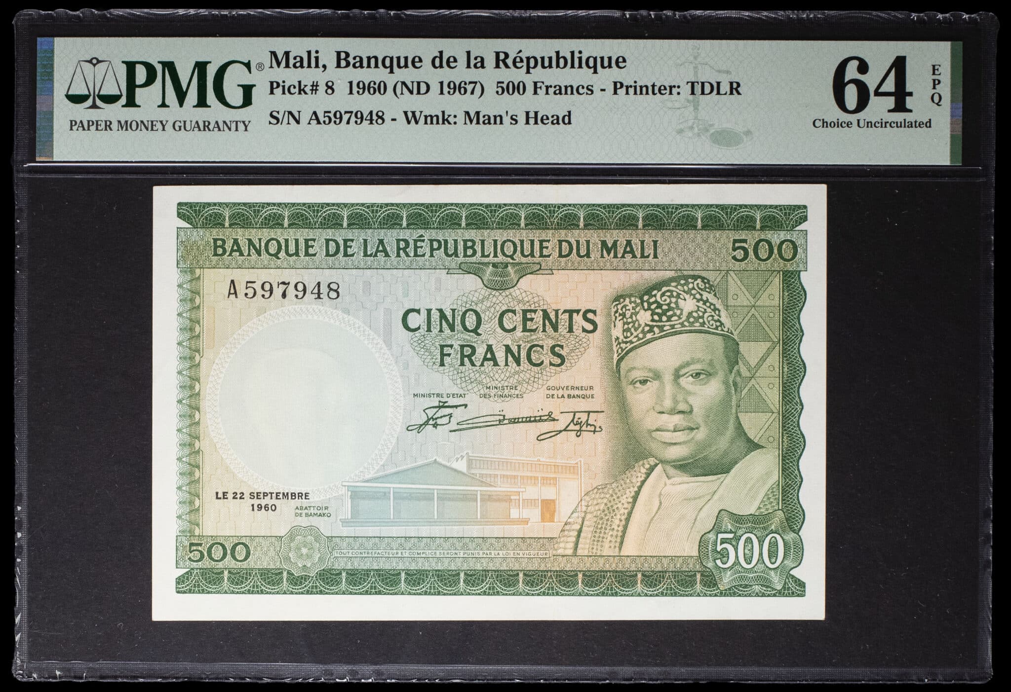 - 500 francs avec le portrait du président Mobido Keita, deuxième émission 22 septembre 1960.