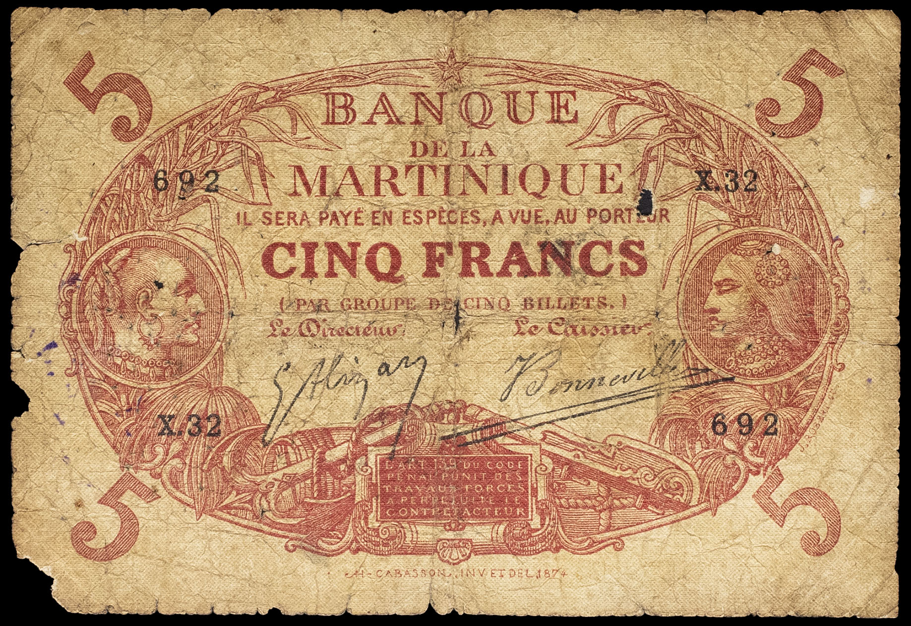 - 5 francs type “rouge” dit “Cabasson” ND (1903).