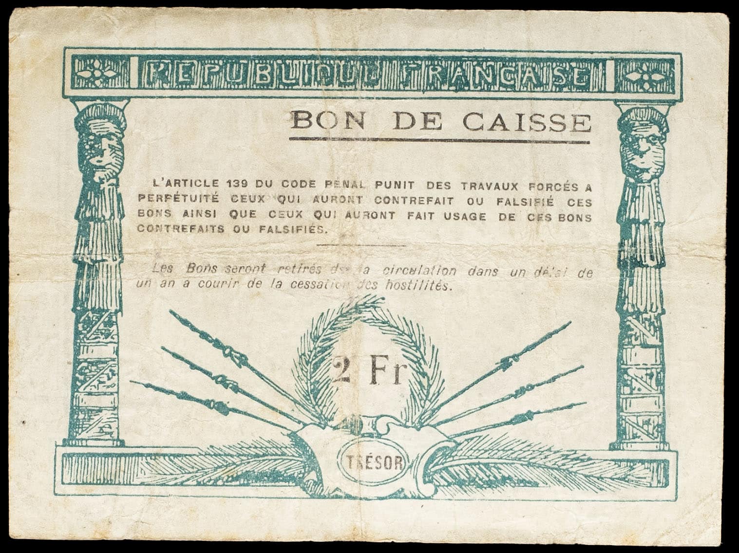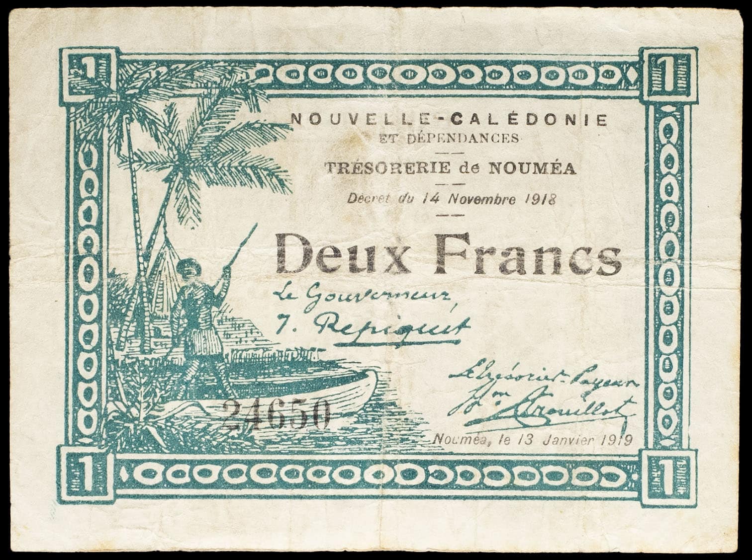 - NEW CALEDONIA 2 francs type “vert et noir” - Trésorerie de Nouméa 14 novembre 1918.