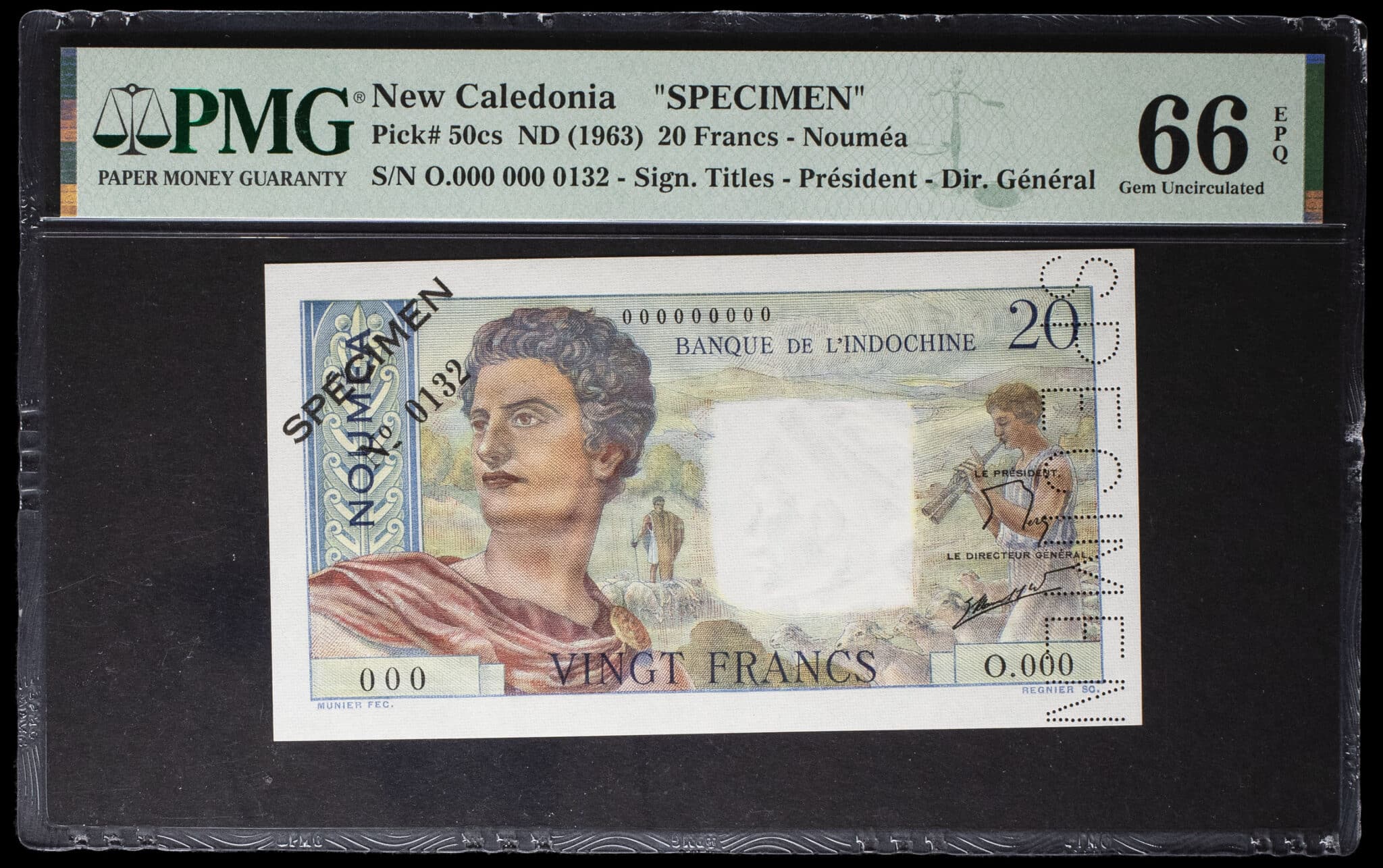 - NEW CALEDONIA 20 francs type “jeune berger” (SPÉCIMEN) - Banque de l’Indochine ND (1963).