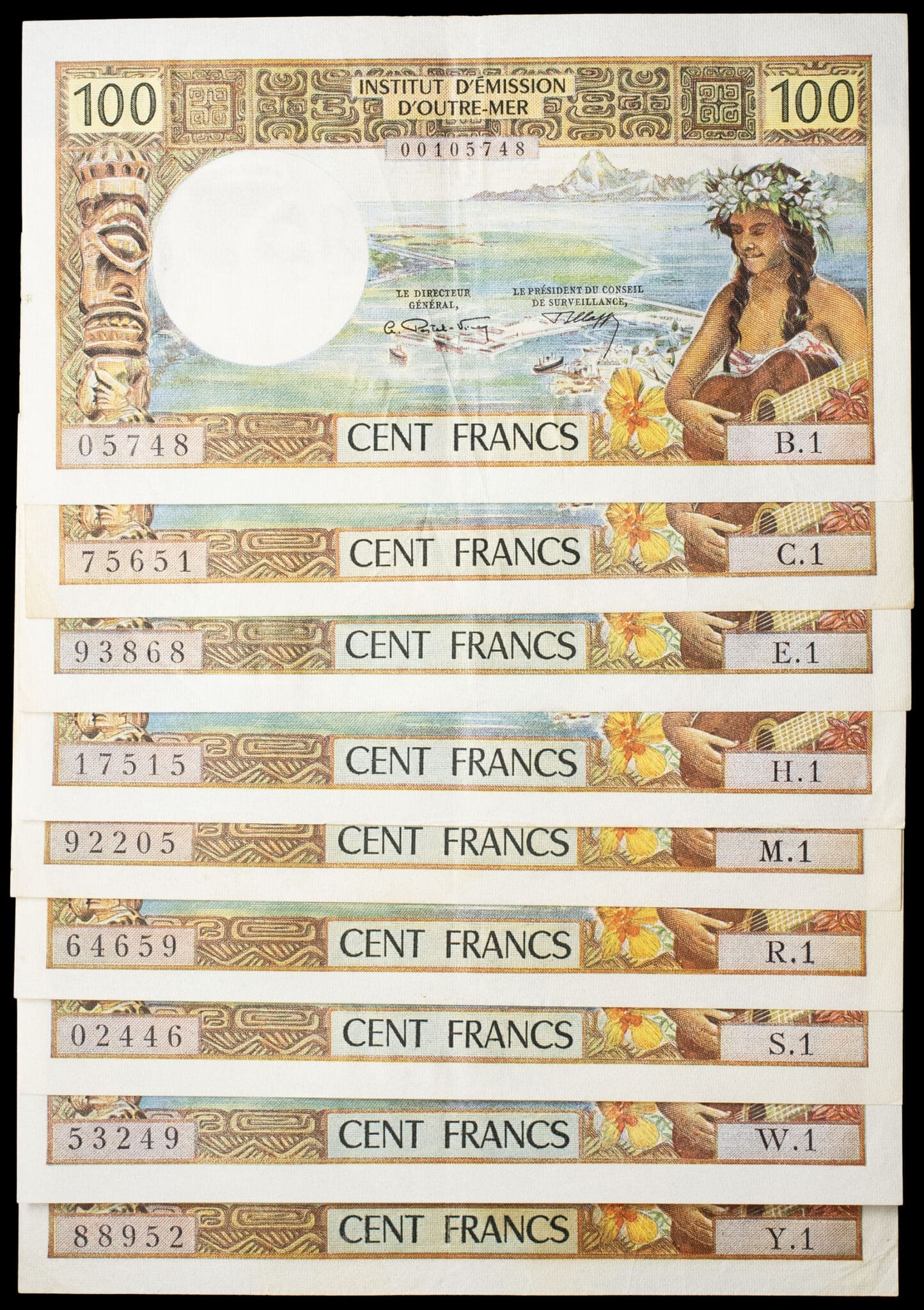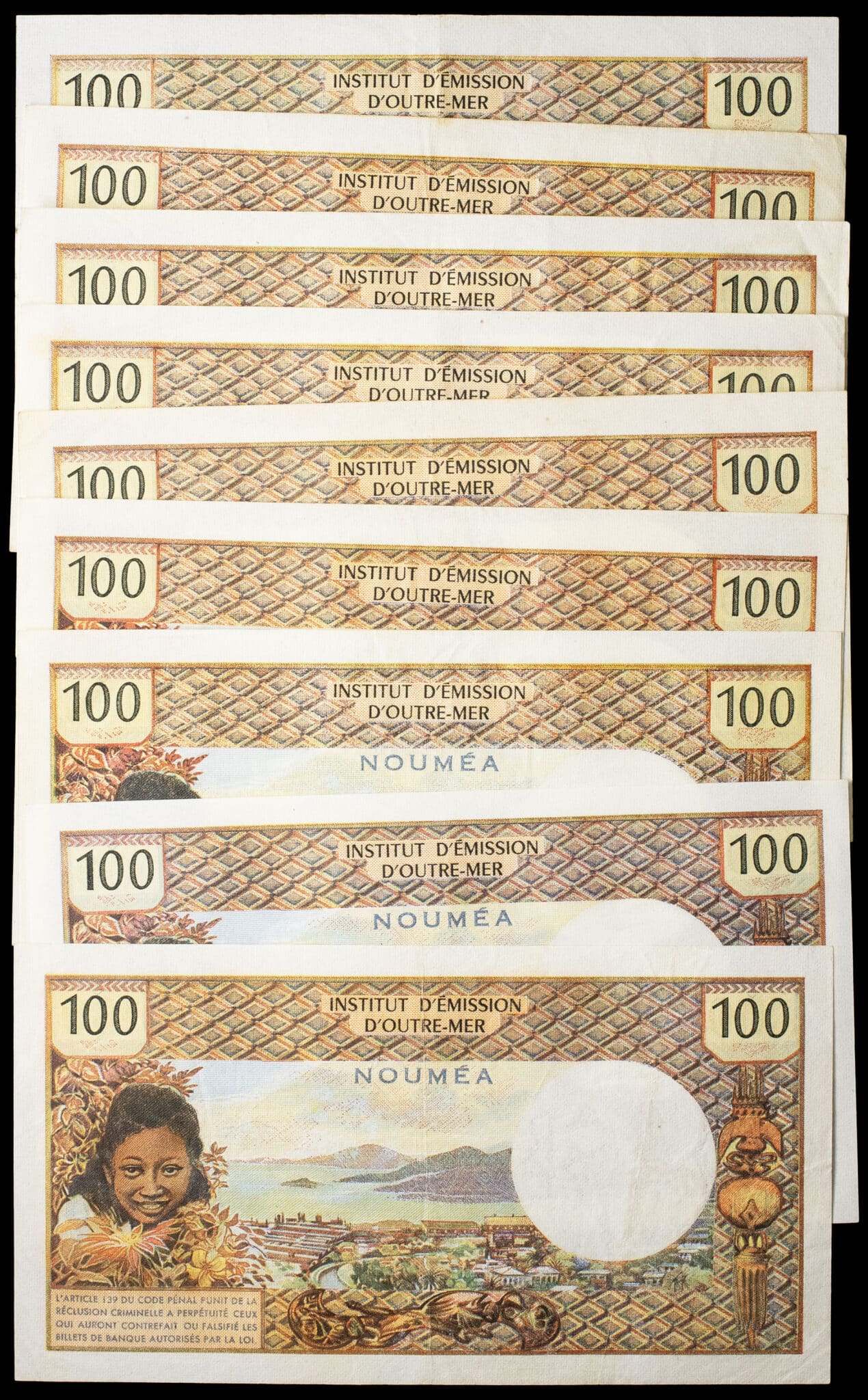 - NEW CALEDONIA Lot (9) - 100 francs - Institut d’Émission d’Outre-Mer ND (1969).