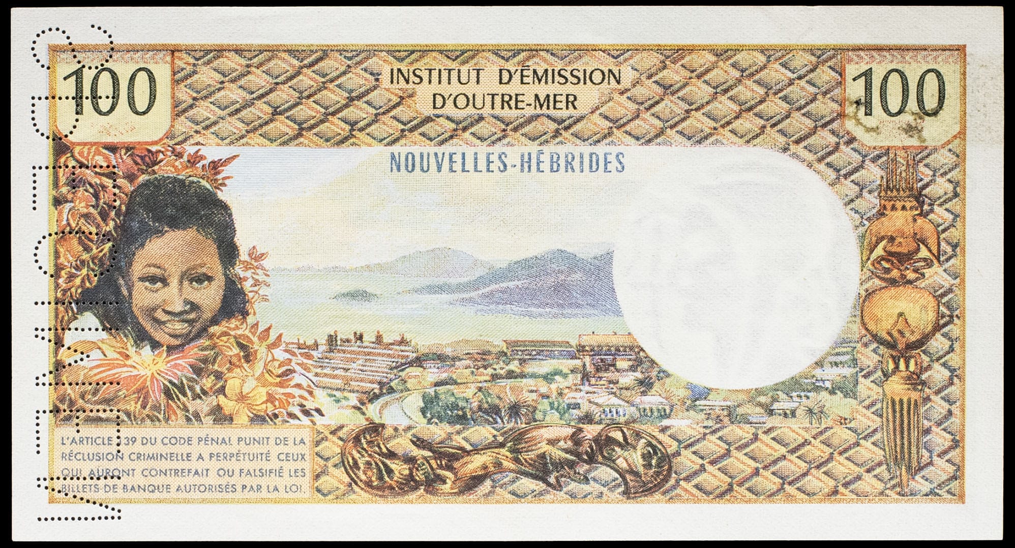 - NEW HEBRIDES 100 francs (SPÉCIMEN) ND (1965).