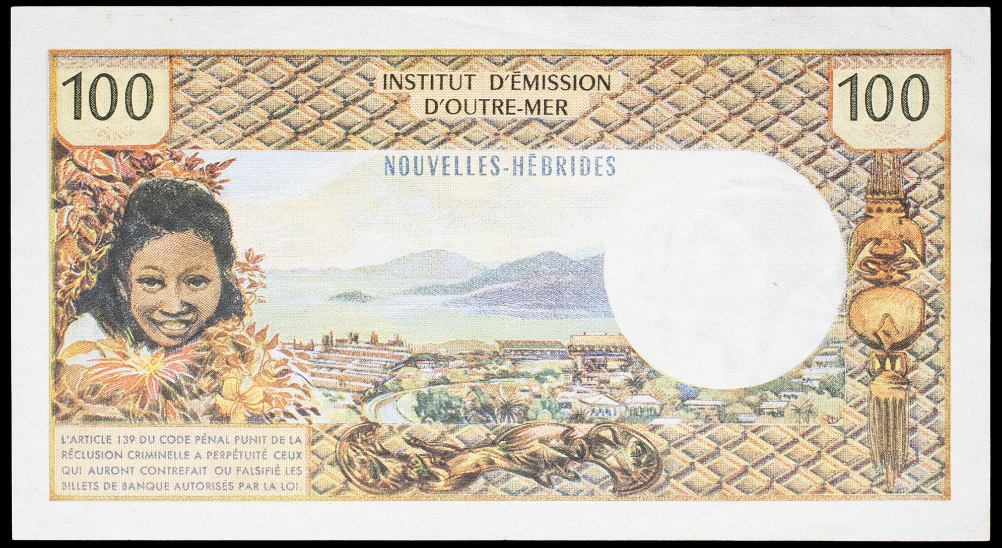 - NEW HEBRIDES 100 francs - Institut d’Émission d’Outre-Mer ND (1969).