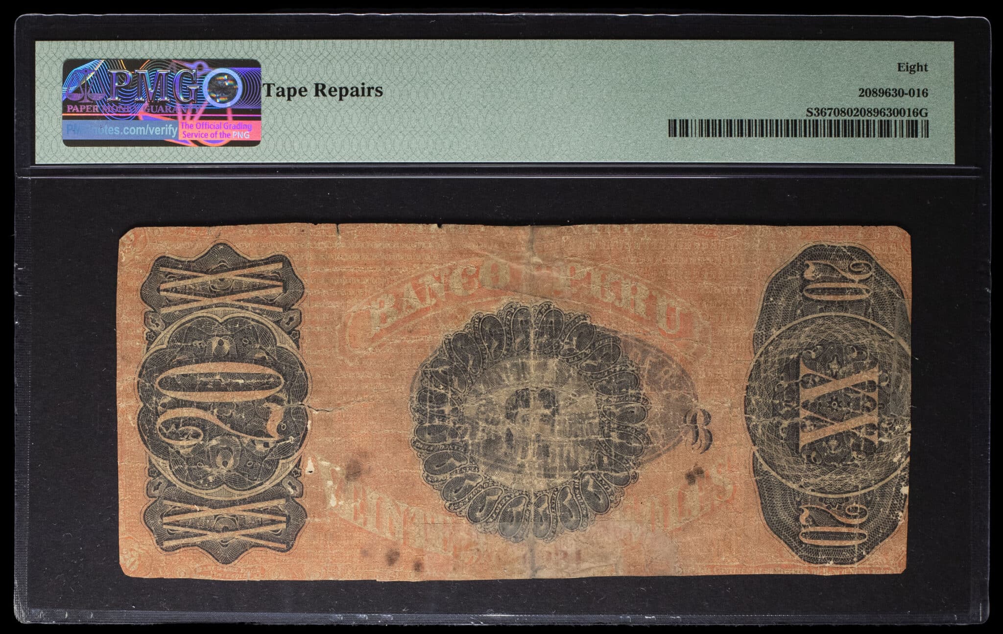 PMG 8 Very Good (2089630-016). Exemplaire ayant fortement circulé, avec une restauration à l’adhésif en marge inférieure. B.