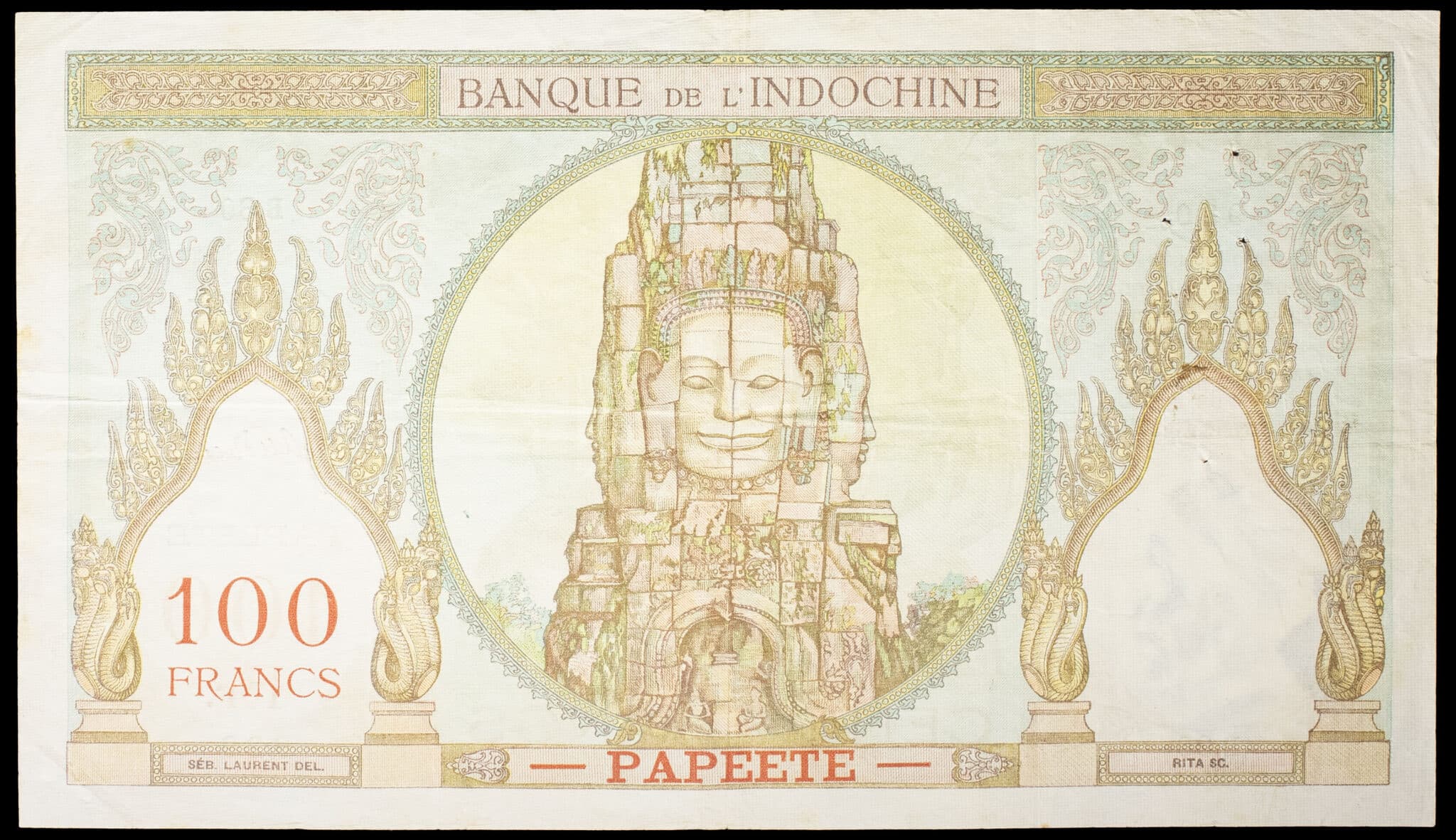 - FRENCH POLYNESIA / TAHITI 100 francs type “ruines d’Angkor” - Banque de l’Indochine ND (1939-1940).
