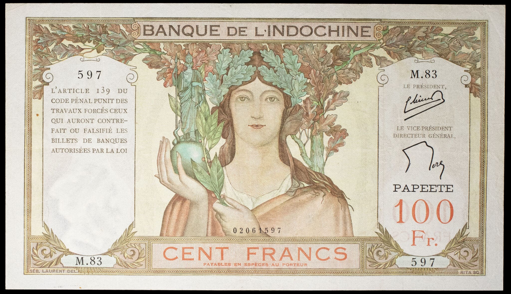 - FRENCH POLYNESIA / TAHITI 100 francs type “ruines d’Angkor” - Banque de l’Indochine ND (1956-1960).