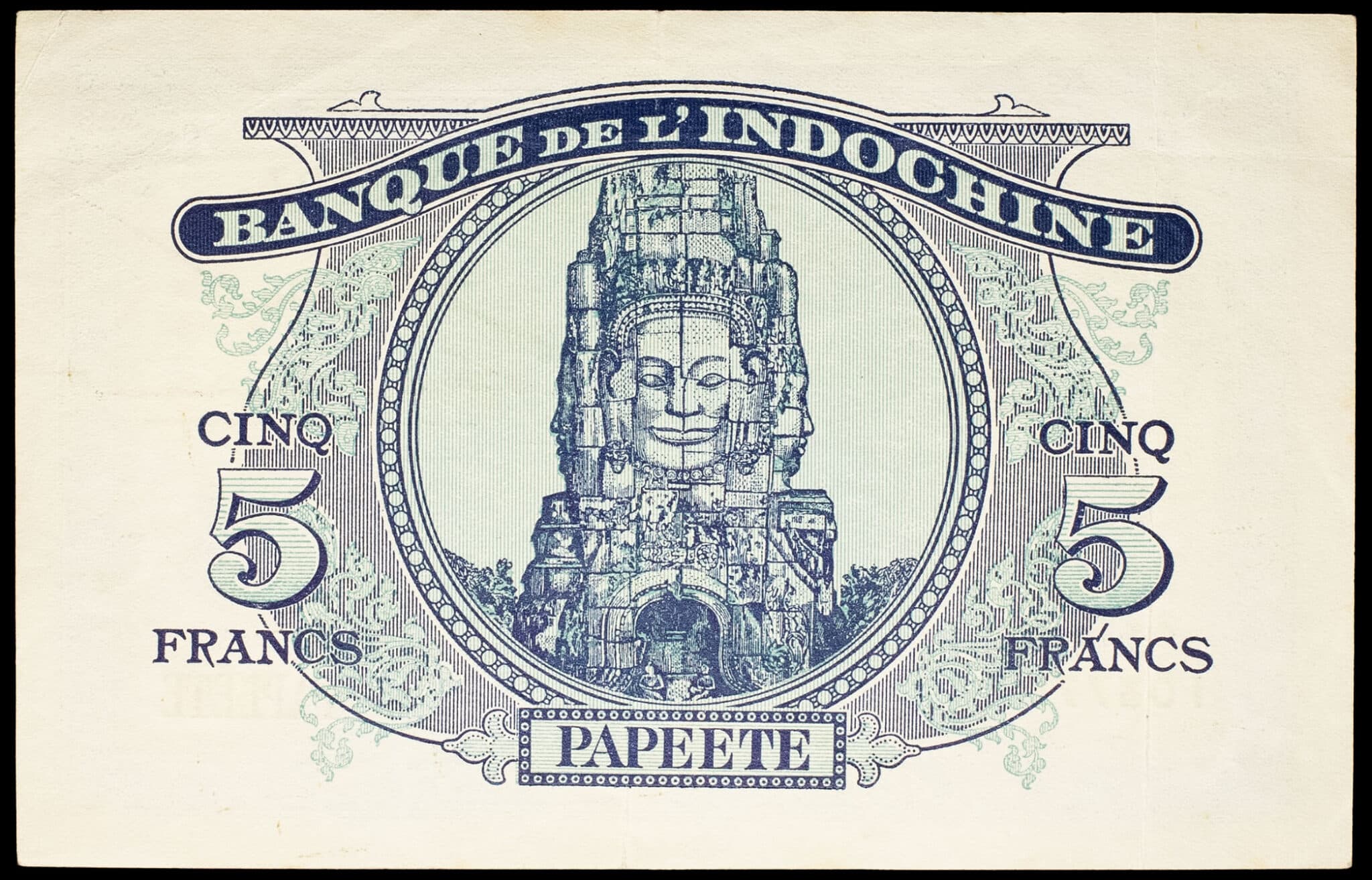 - FRENCH POLYNESIA / TAHITI 5 francs type “Minerve”, impression australienne - Banque de l’Indochine ND (1944).