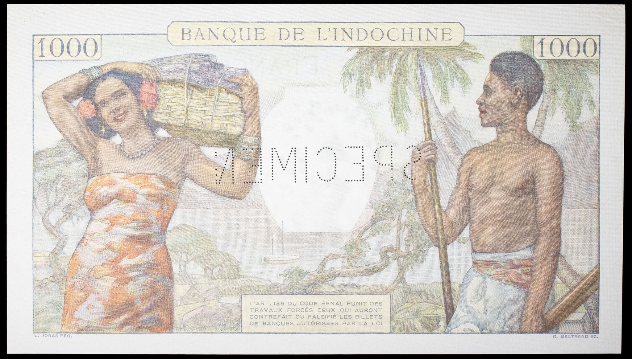 - FRENCH POLYNESIA / TAHITI 1000 francs (SPÉCIMEN) - Banque de l’Indochine ND (1954-1957).