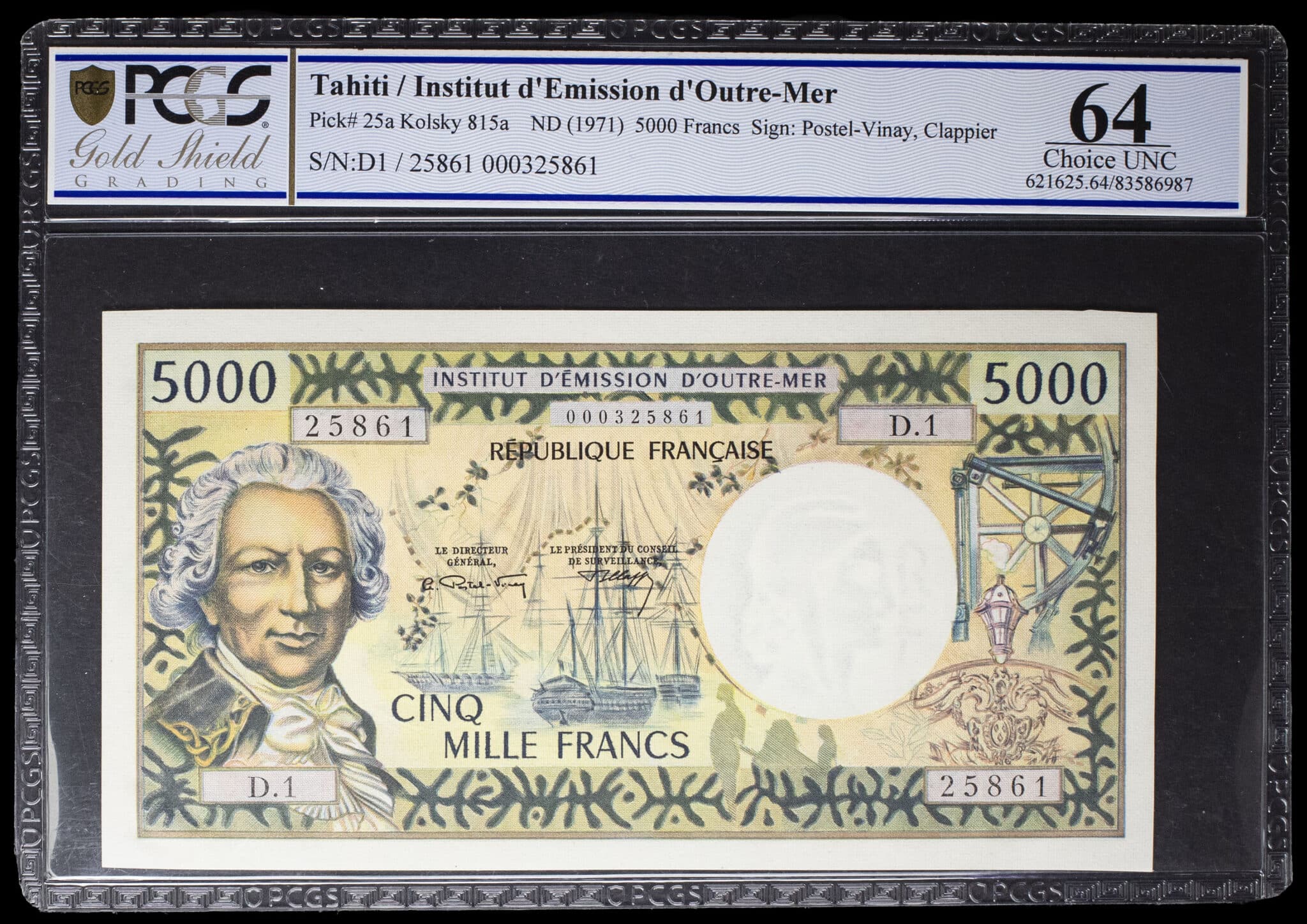 - FRENCH POLYNESIA / TAHITI 5000 francs type “Bougainville” - Institut d’Émission d’Outre-Mer ND (1971).