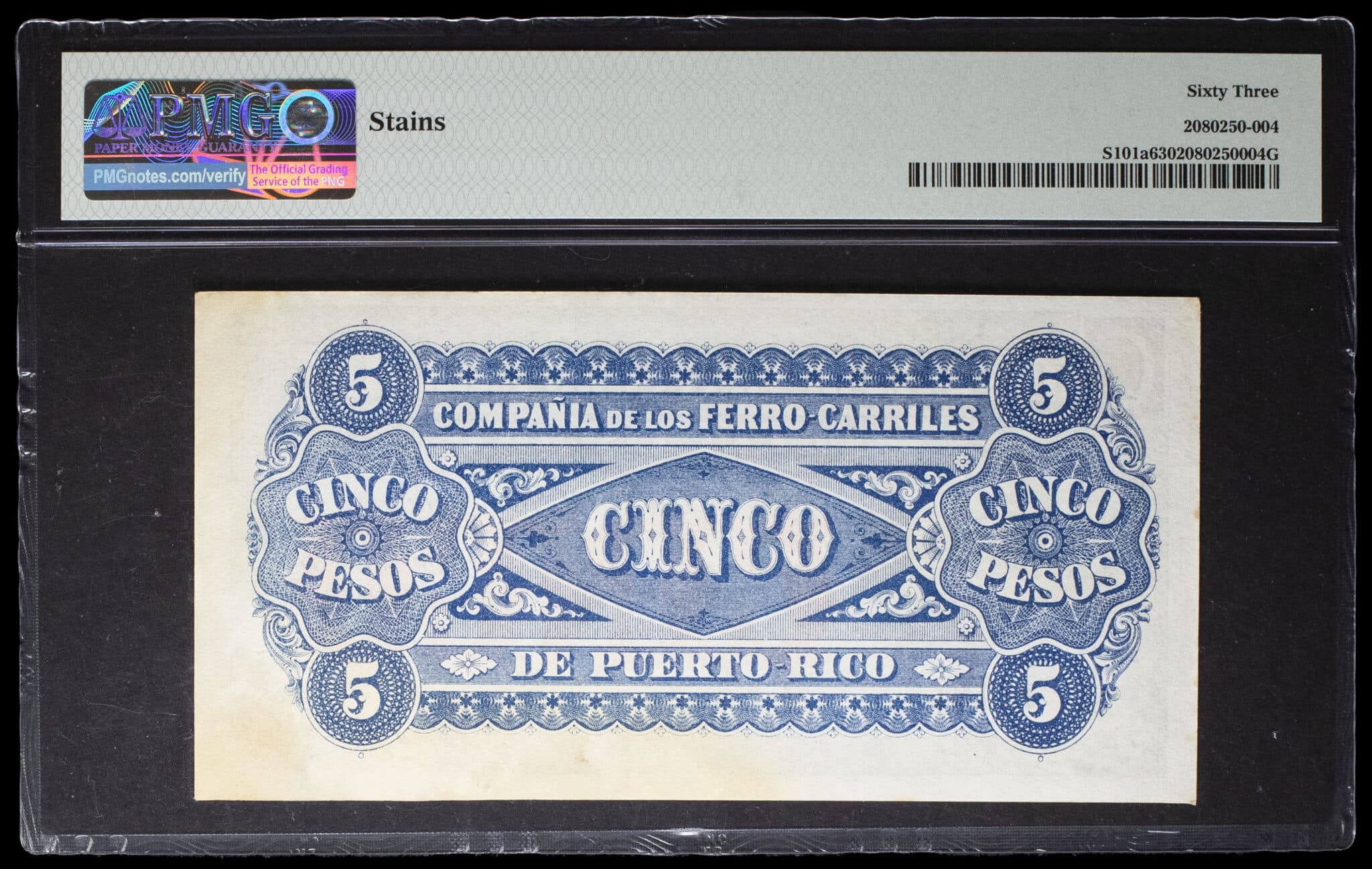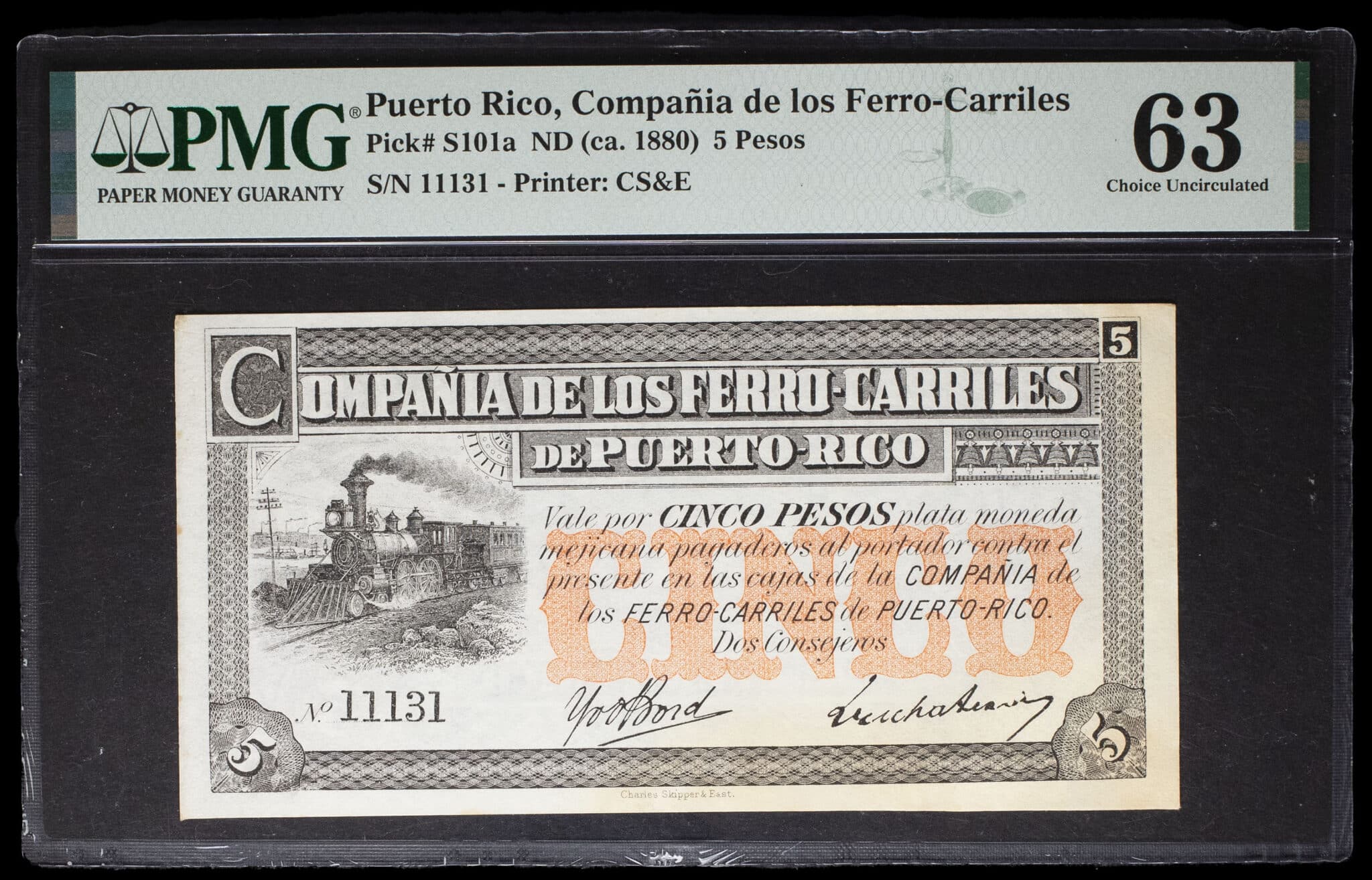- PUERTO RICO 5 pesos - Compañia de los Ferro-Carriles ND (1880).