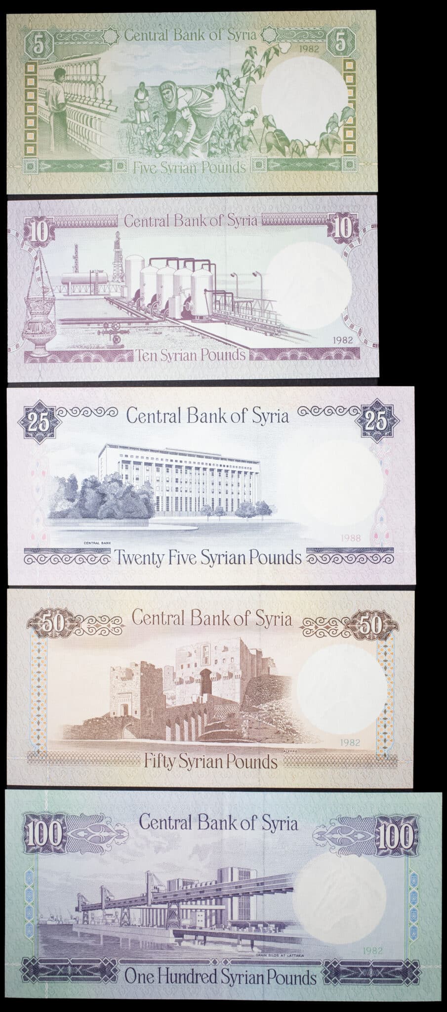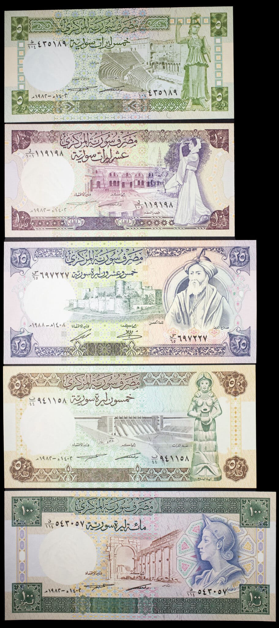 - SYRIA Lot (5) - Série de 5 à 100 pounds 1982 (AH 1302) à 1988 (AH 1308).