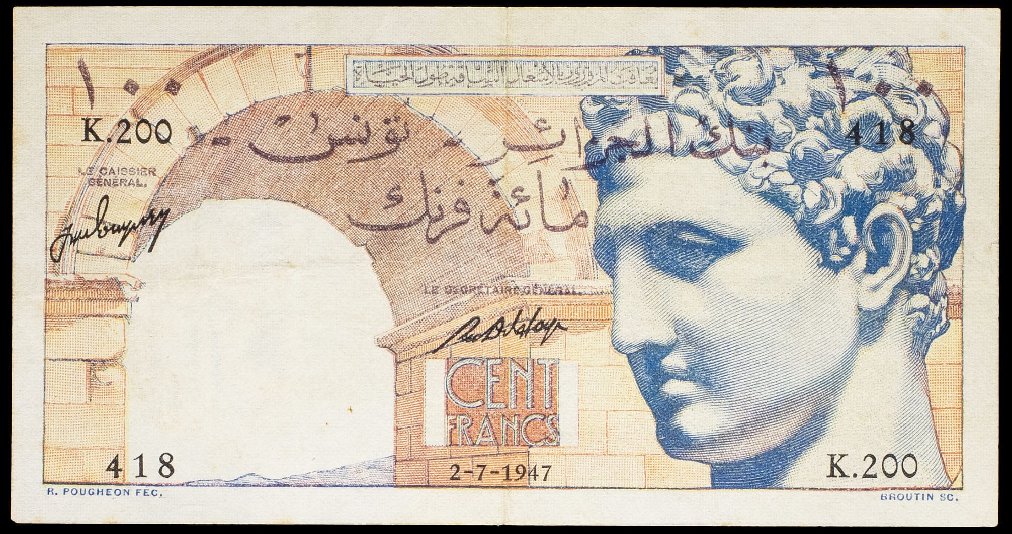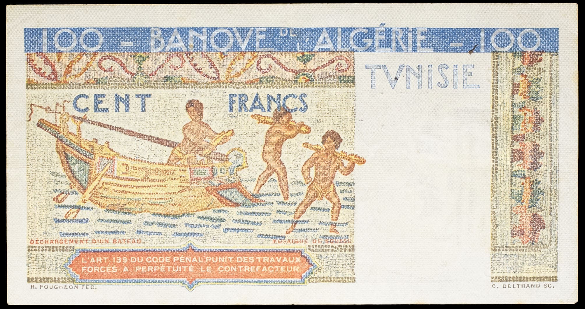 - TUNISIA 100 francs type “Hermès” - Banque de l’Algérie-Tunisie 2-7-1947.