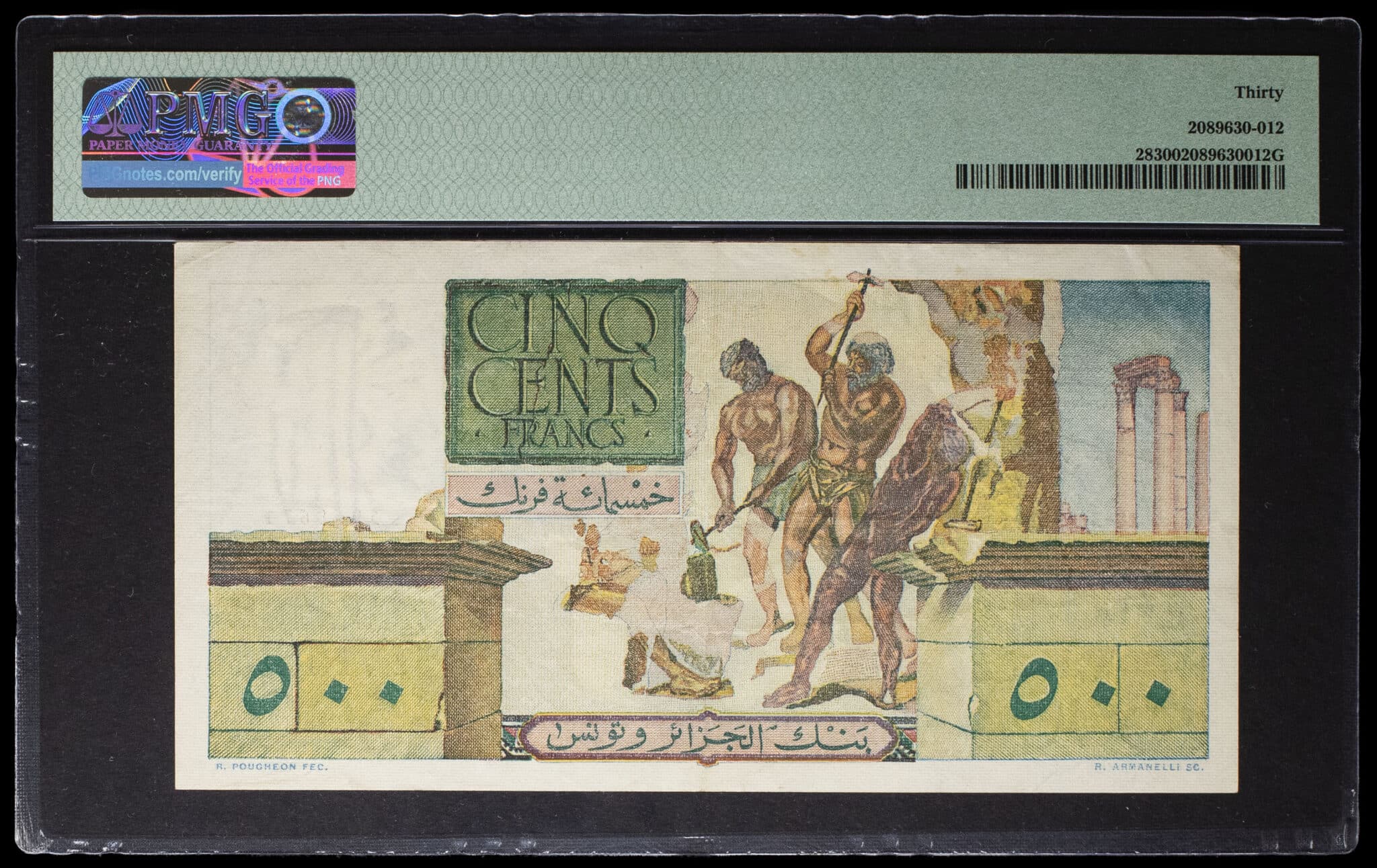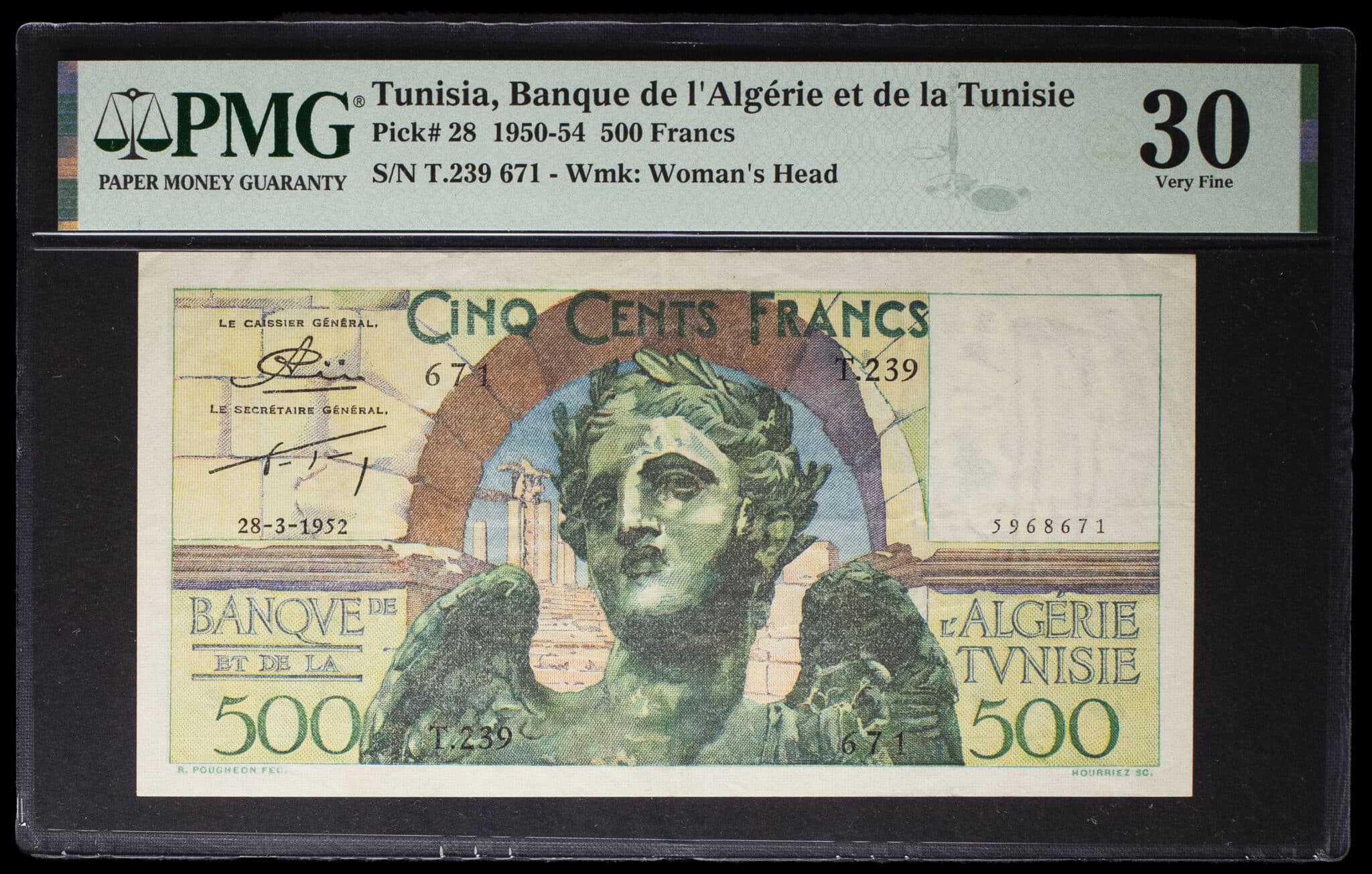 - TUNISIA 500 francs type “Victoire ailée” modifié - Banque de l’Algérie et de la Tunisie 28-3-1952.