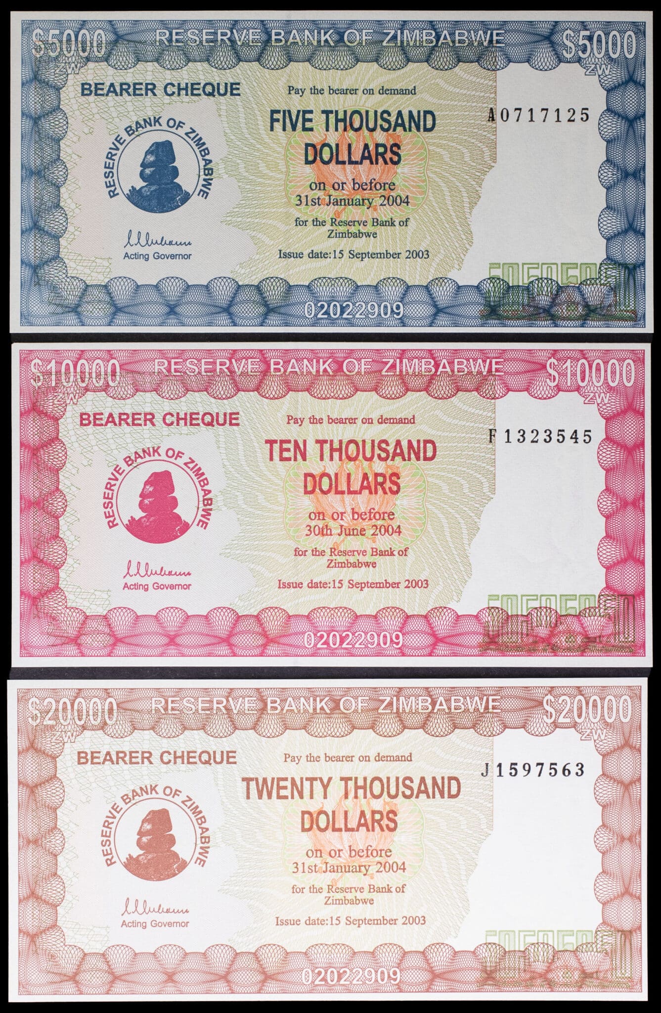 - Lot (4) - Série complète de 5000 à 20 000 dollars - Bearer cheque 15 septembre 2003.