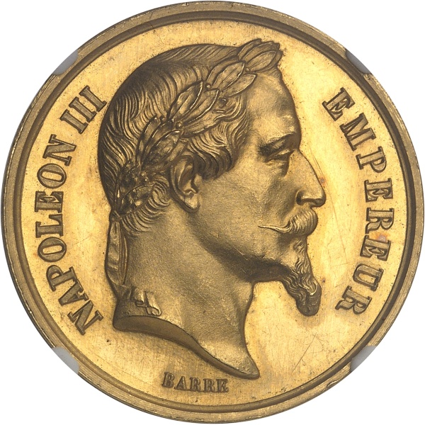 Av. NAPOLEON III EMPEREUR. Tête laurée à droite, au-dessous signature BARRE.