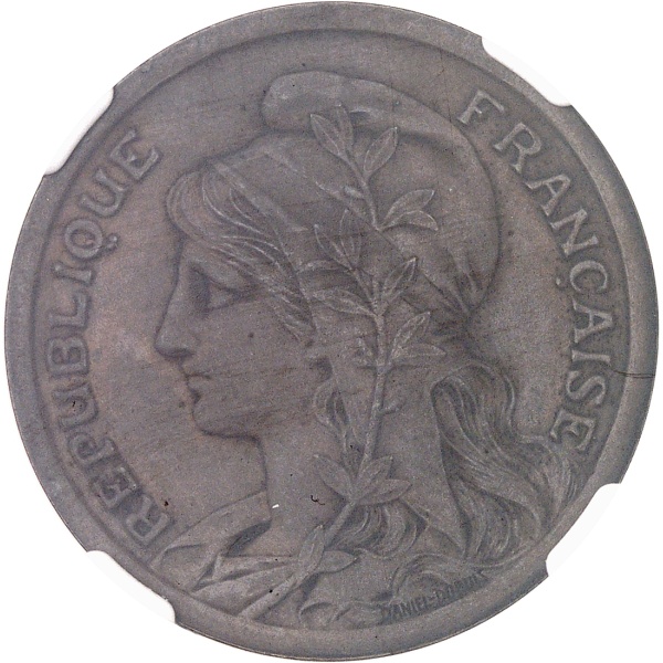 IIIe République (1870-1940). Essai de 10 centimes Daniel-Dupuis, daté avec ESSAI en relief, tête à gauche, Flan bruni (PROOF) 1898 (1897), Paris.
