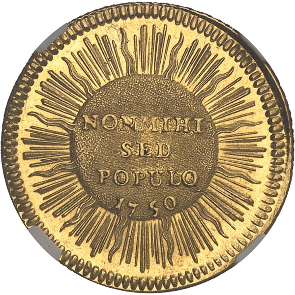 Rv. NON MIHI SED POPULO (date). Légende sur un soleil rayonnant.