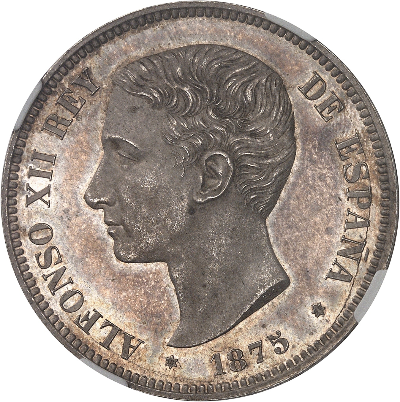 Alphonse XII (1874-1885). 5 pesetas 1875 (18 - 75) DE, M, Madrid.
