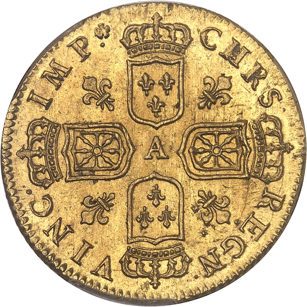 Av. LVD. XV. D. G. FR. ET. NAV. REX. (différent). Tête couronnée du Roi à gauche, au-dessous (date).