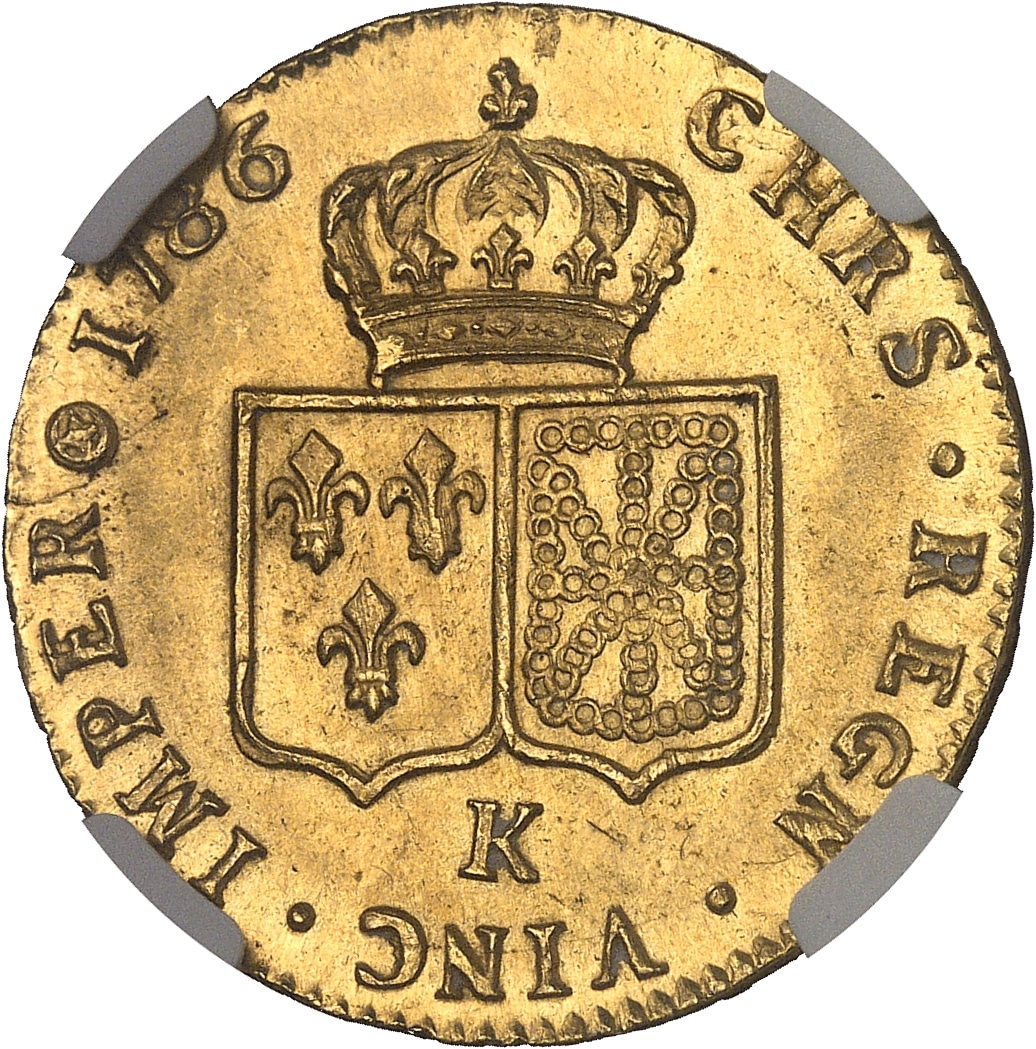 Louis XVI (1774-1792). Double louis d’or à la tête nue 1786, 1er semestre, K, Bordeaux.