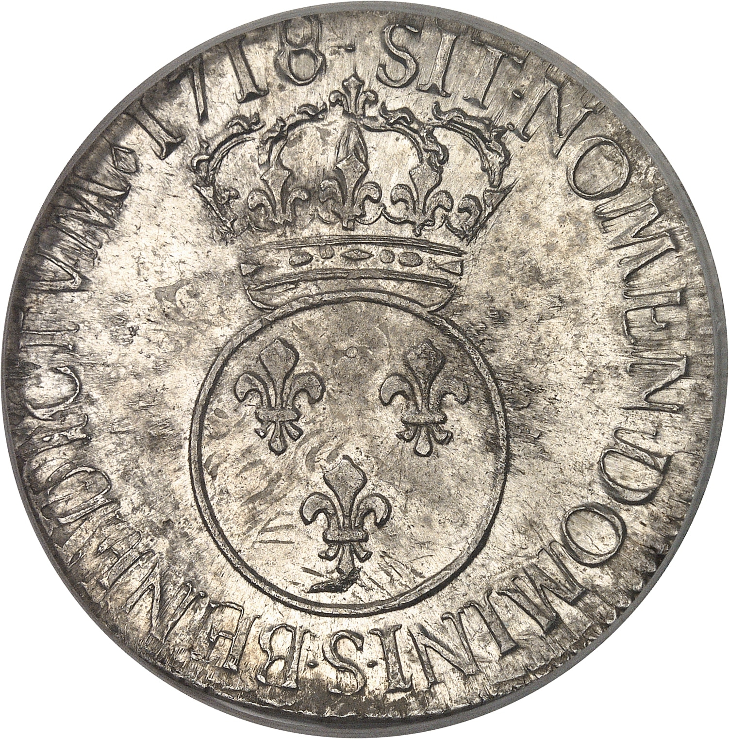 Louis XV (1715-1774). Écu dit Vertugadin 1718, S, Reims.