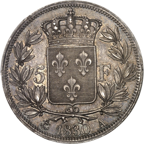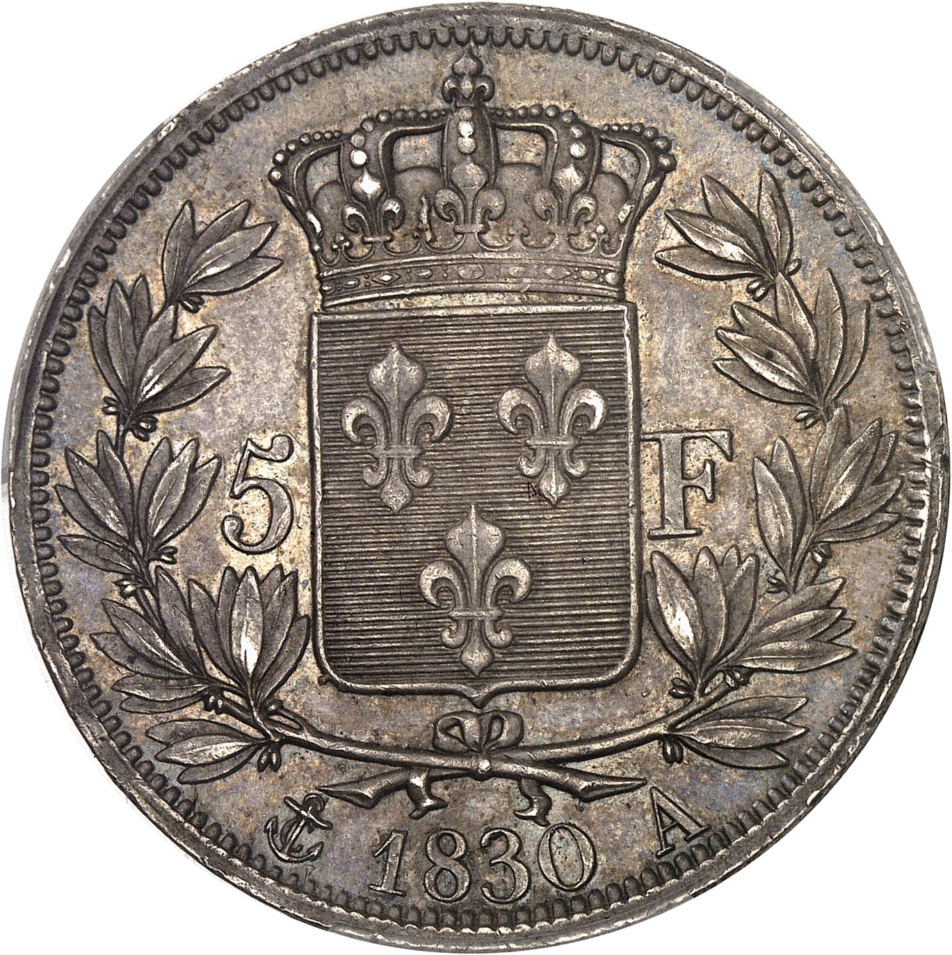 Charles X (1824-1830). 5 francs, tranche en relief 1830, A, Paris.