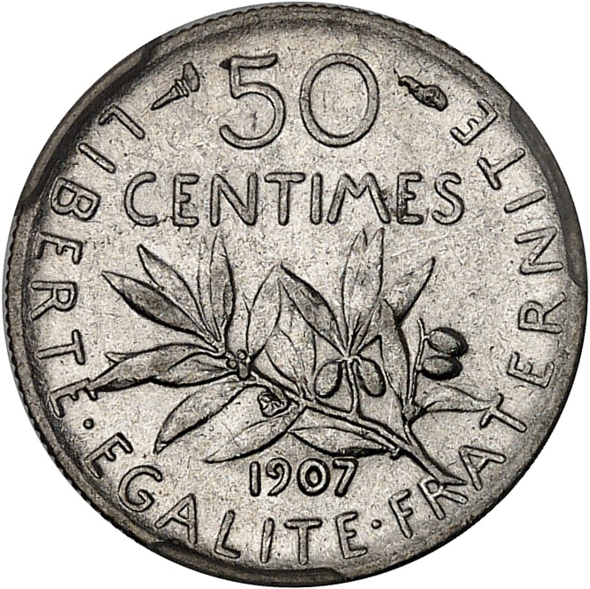 IIIe République (1870-1940). 50 centimes Semeuse 1907, Paris.